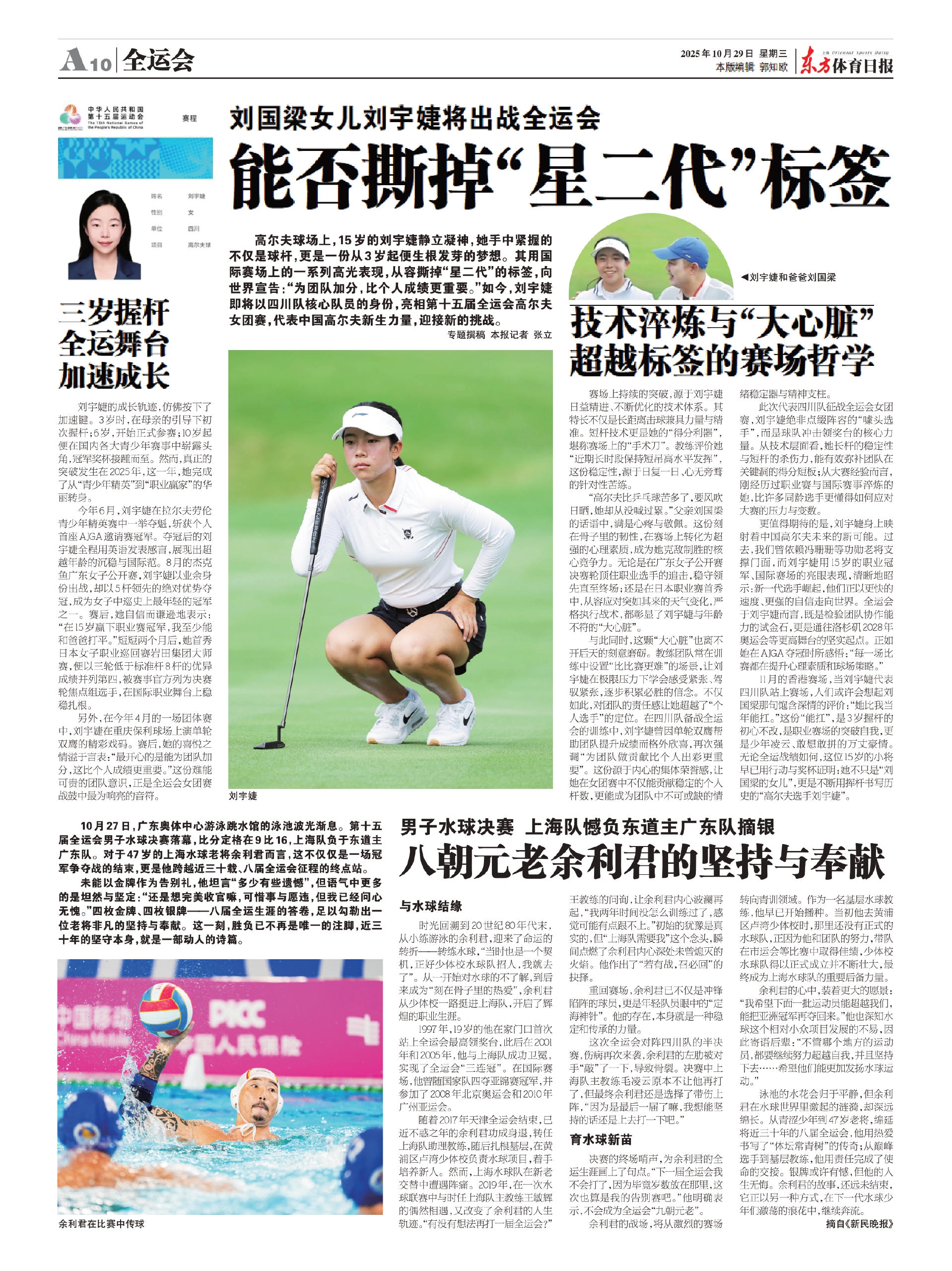 与此同时,这颗“大心脏”也离不开后天的刻意磨砺。教练团队常在训练中设置“比比赛更难”的场景,让刘宇婕在极限压力下学会感受紧张、驾驭紧张,逐步积累必胜的信念。不仅如此,对团队的责任感让她超越了“个人选手”的定位。在四川队备战全运会的训练中,刘宇婕曾因单轮双鹰帮助团队提升成绩而格外欣喜,再次强调“为团队做贡献比个人出彩更重要”。这份源于内心的集体荣誉感,让她在女团赛中不仅能贡献稳定的个人杆数,更能成为团队中不可或缺的情绪稳定器与精神支柱。