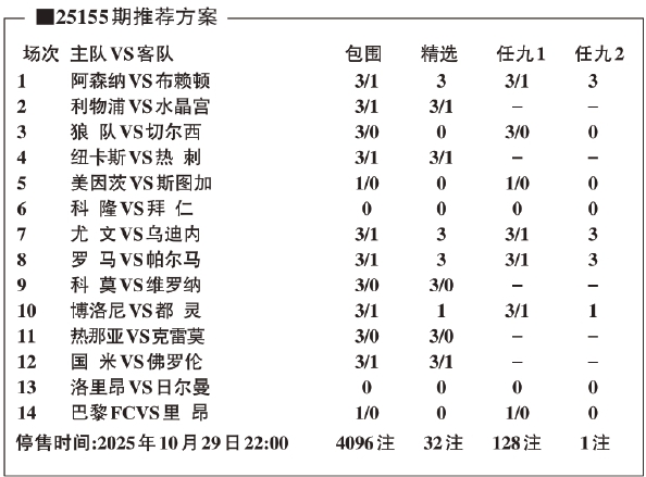 注:比赛场次截止时间为10月28日23:59,具体购买场次以体彩中心网站最终显示为准