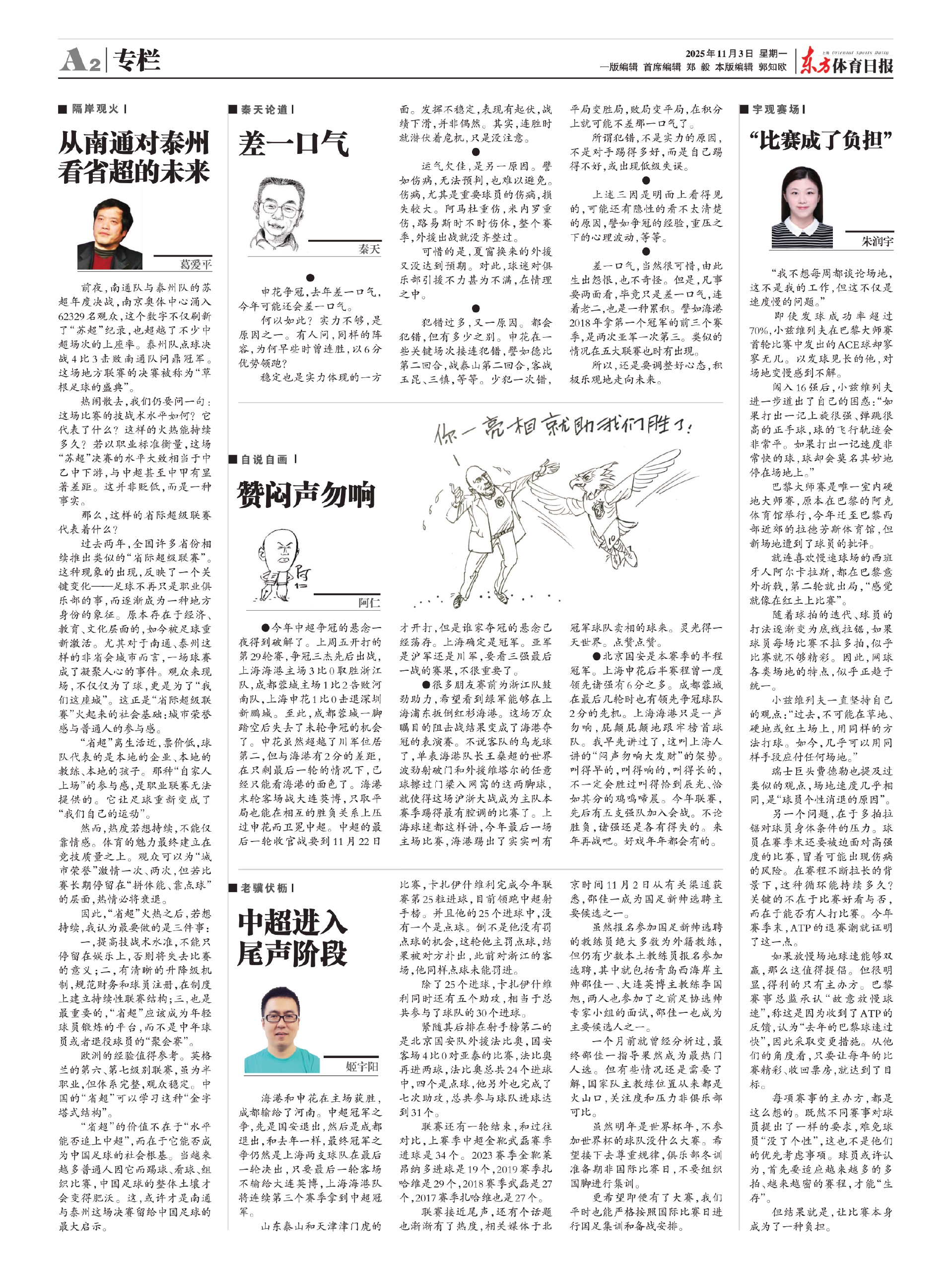 前夜,南通队与泰州队的苏超年度决战,南京奥体中心涌入62329名观众,这个数字不仅刷新了“苏超”纪录,也超越了不少中超场次的上座率。泰州队点球决战4比3击败南通队问鼎冠军。这场地方联赛的决赛被称为“草根足球的盛典”。