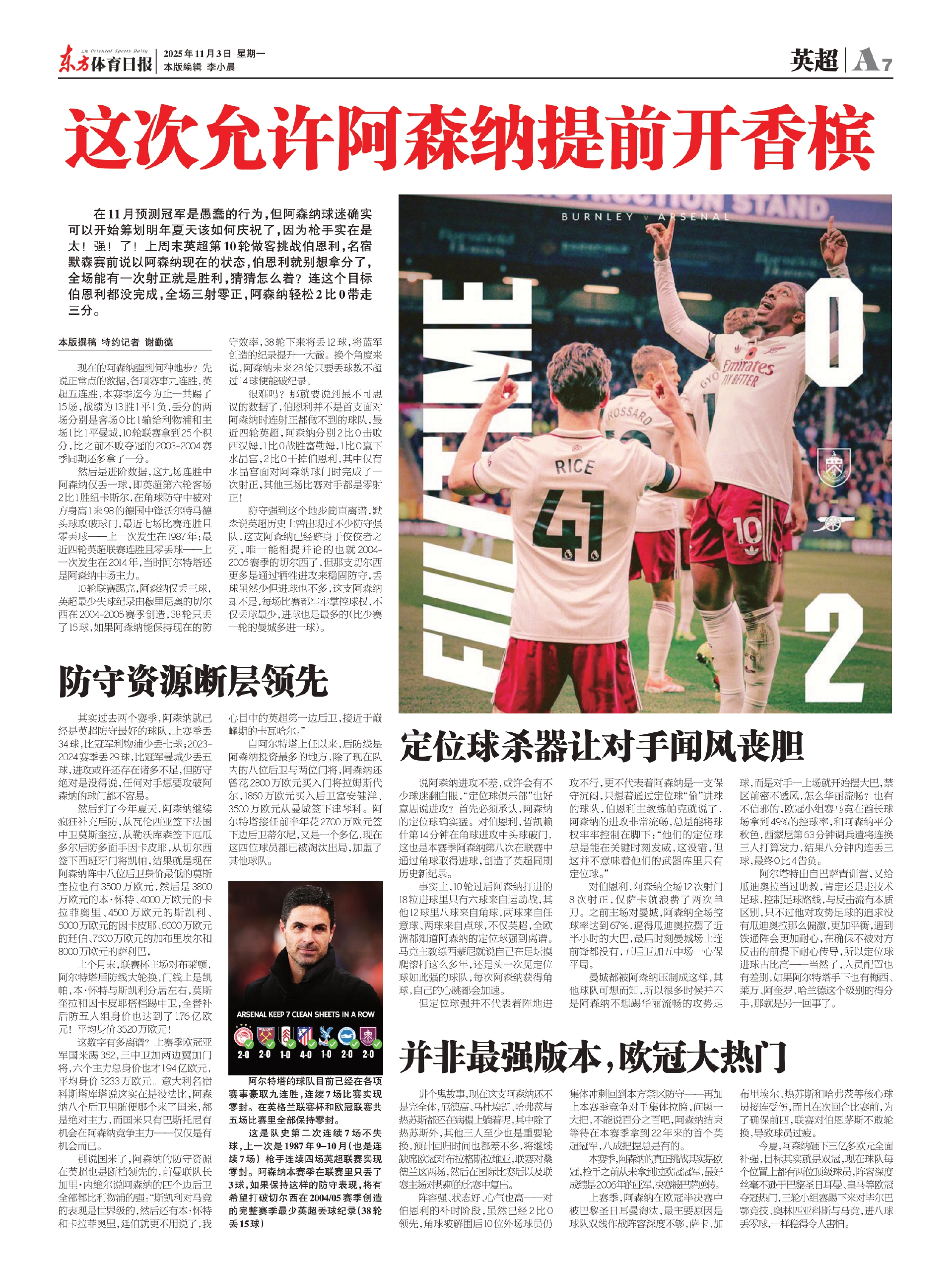 说阿森纳进攻不差,或许会有不少球迷翻白眼,“定位球俱乐部”也好意思说进攻?首先必须承认,阿森纳的定位球确实猛。对伯恩利,哲凯赖什第14分钟在角球进攻中头球破门,这也是本赛季阿森纳第八次在联赛中通过角球取得进球,创造了英超同期历史新纪录。
