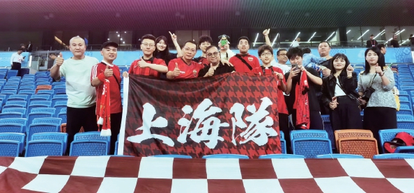 另一个不得不提的是,年轻的上海队员们在比赛中感受到了来自球迷的无私支持。看台上有20位球迷组成啦啦队为他们呐喊助威。在场面胶着的上半场,上海啦啦队的歌声一分钟都没有停歇,下半场球员体能滑坡时,看台上的上海球迷拼尽全力大声加油,还“点名”几位核心球员振作起来……这样的精神状态无疑也帮球队鼓足干劲,度过全运开赛来最艰难的86分钟。