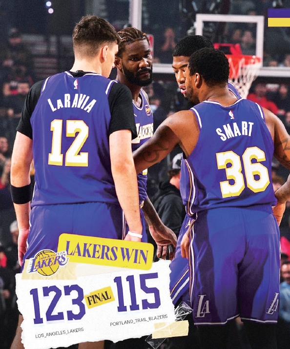 湖人6胜2负排名西部第3位,主场2胜2负,上一场比赛客场123比115胜开拓者,首发是拉拉维亚、斯玛特、八村塁、克内克特、艾顿,艾顿得到29分10篮板,八村塁28分4篮板,史密斯25分6助攻,拉拉维亚11分6助攻。