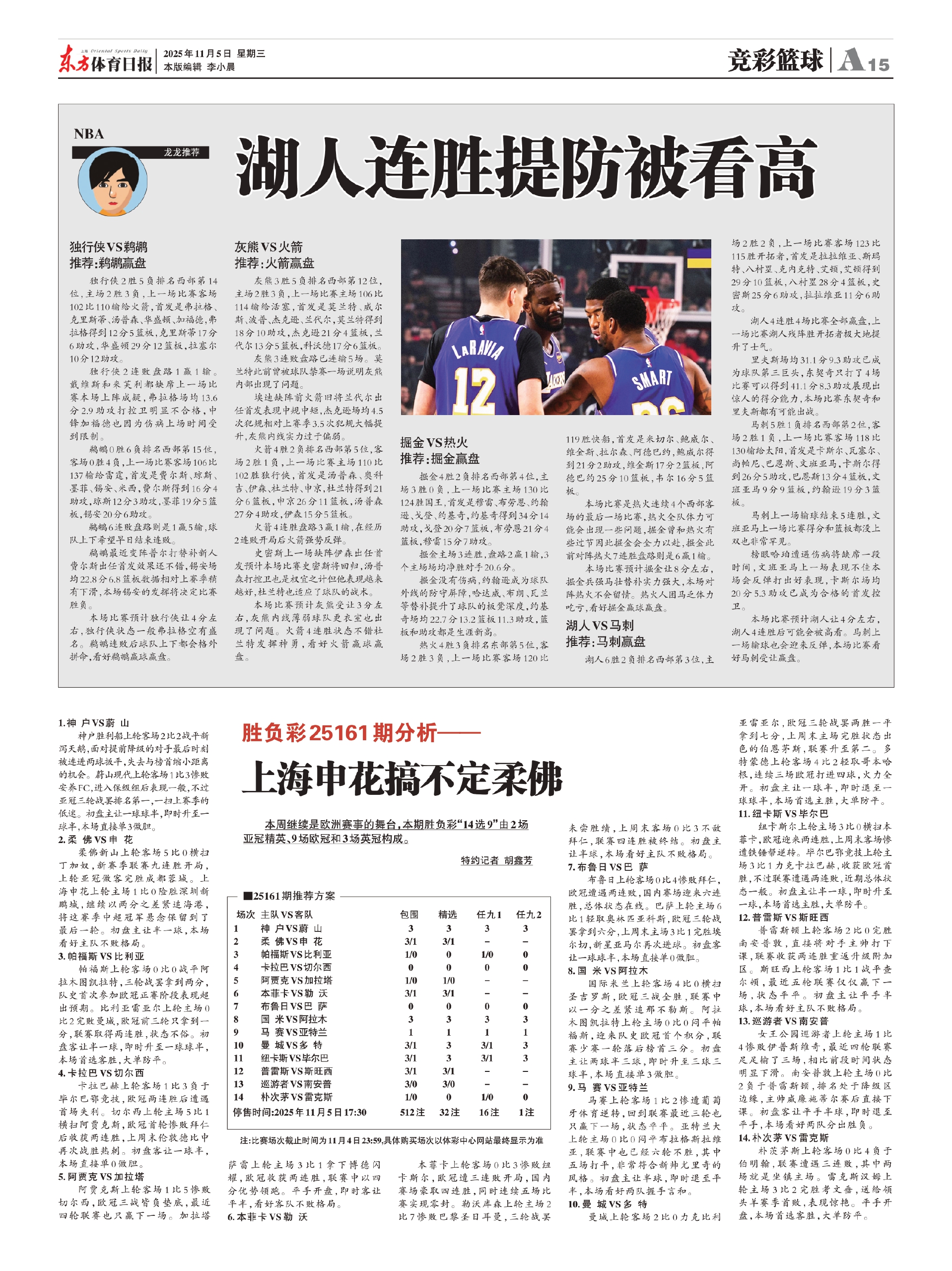 本场比赛预计湖人让4分左右,湖人4连胜后可能会被高看。马刺上一场输球也会迎来反弹,本场比赛看好马刺受让赢盘。
