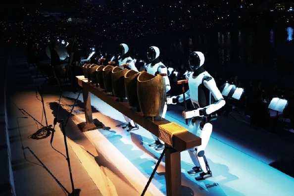 最后是书写湾区礼赞。在艺术呈现上,主创团队实现了多项突破。彭高峰表示:“创作《天海一心》《龙腾伶仃洋》等主题乐章,歌颂三地同心、海天交融;借助环形水幕舞台等前沿舞美技术,在体育场内‘造出一片海’,打造出沉浸式的海洋盛境;舞蹈编排以‘同心圆’结构为基底,融合岭南舞蹈中‘水’的灵动意象,由空灵到饱满,生动诠释了粤港澳大湾区依海而生、向海而兴的文化根脉与发展历程。”