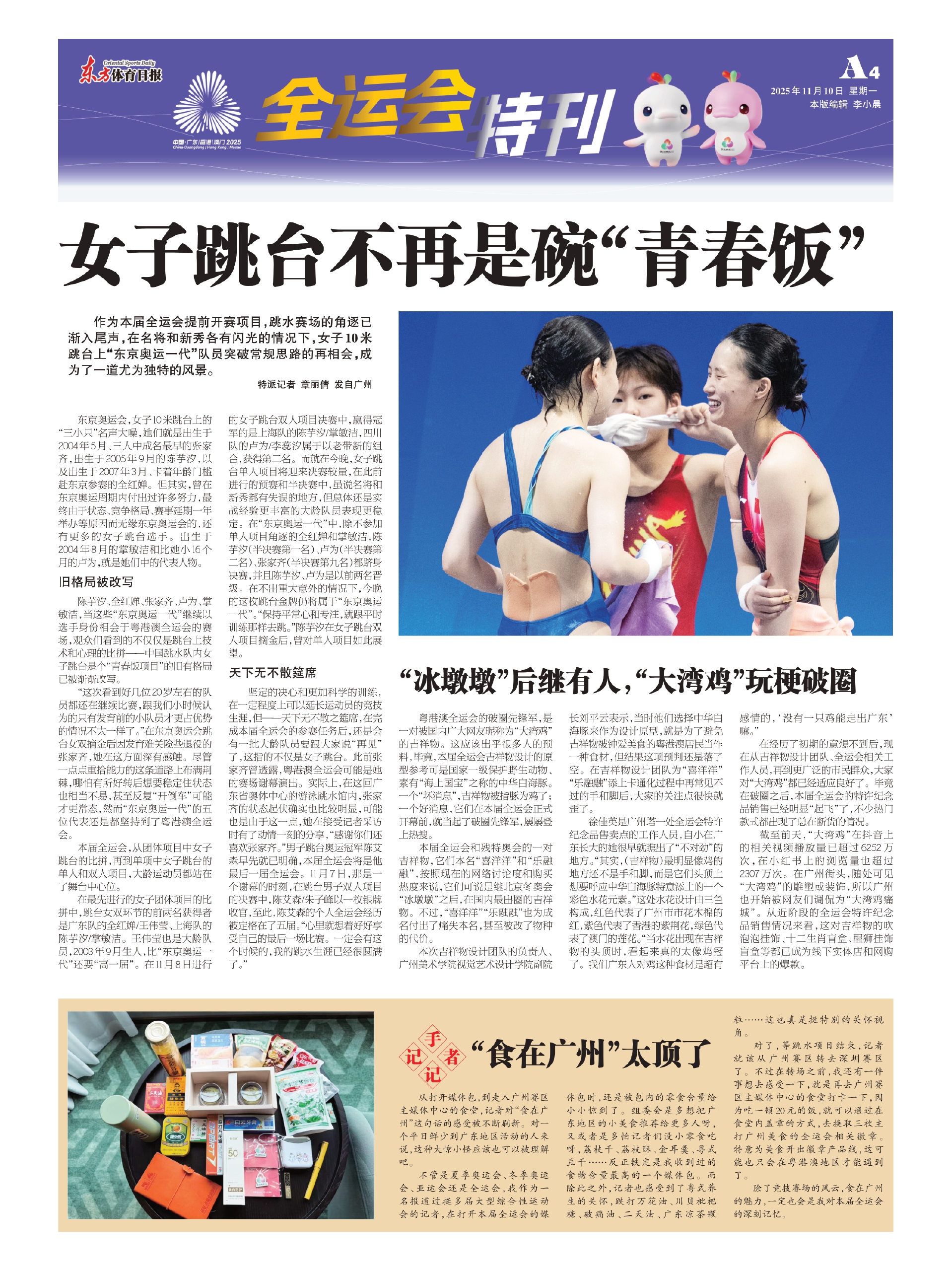 陈芋汐、全红婵、张家齐、卢为、掌敏洁,当这些“东京奥运一代”继续以选手身份相会于粤港澳全运会的赛场,观众们看到的不仅仅是跳台上技术和心理的比拼——中国跳水队内女子跳台是个“青春饭项目”的旧有格局已被渐渐改写。