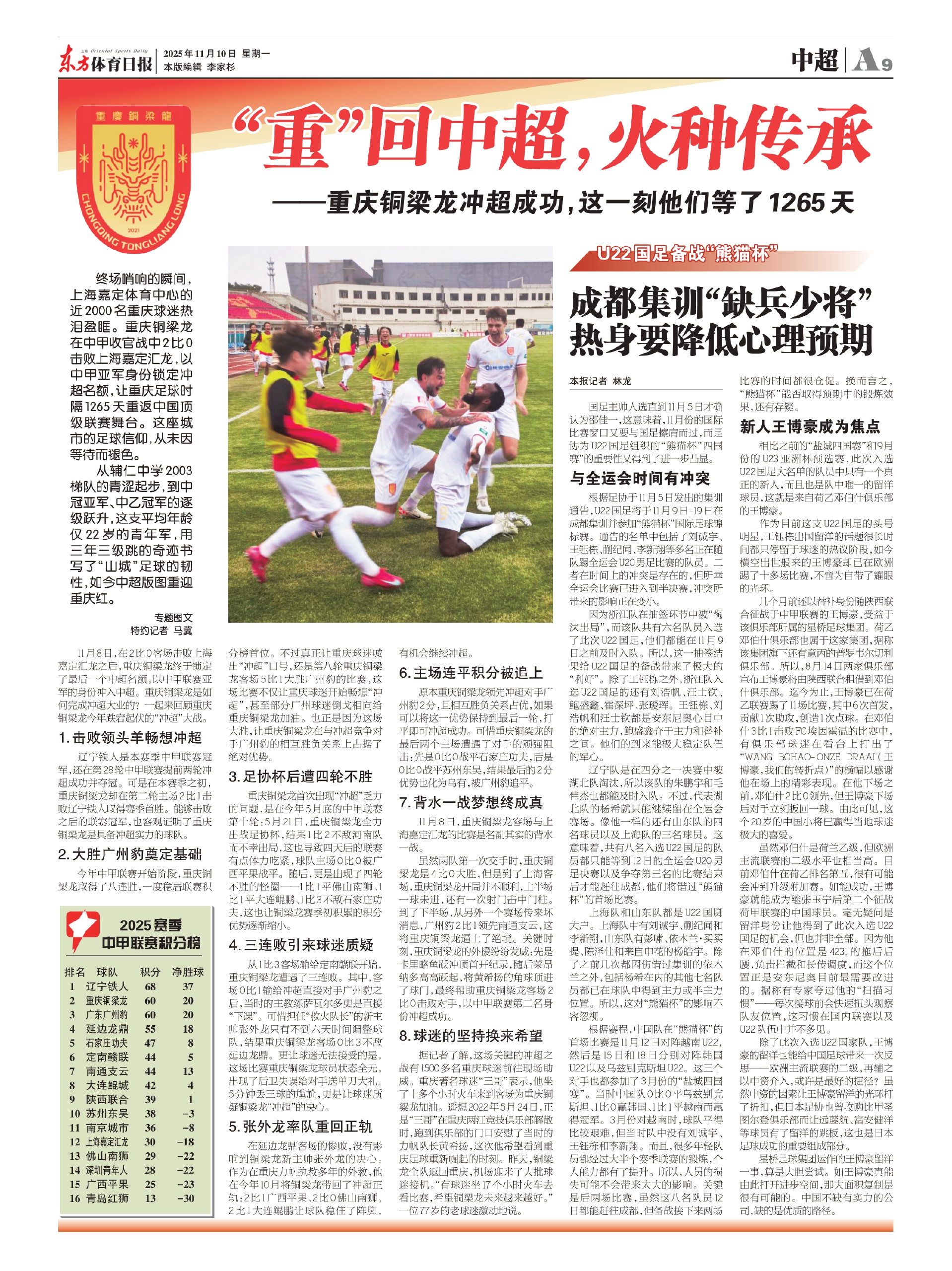 辽宁队是在四分之一决赛中被湖北队淘汰,所以该队的朱鹏宇和毛伟杰也都能及时入队。不过,代表湖北队的杨希就只能继续留在全运会赛场。像他一样的还有山东队的四名球员以及上海队的三名球员。这意味着,共有八名入选U22国足的队员都只能等到12日的全运会U20男足决赛以及争夺第三名的比赛结束后才能赶往成都,他们将错过“熊猫杯”的首场比赛。
