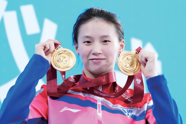 除了生理上遇到的难题,陈芋汐所面对更大的难题是外界给到的压力,这其中首当其冲就是她与全红婵之间的比较,以及由此在互联网上的那些不理智的声音。在单人10米台赛后,陈芋汐接受采访时表示:“感谢大家来支持跳水项目,你们的支持让我坚定地走下去,走到了今天。”确实,东京、巴黎两届奥运会上陈芋汐都在个人项目上输给了全红婵,这无疑让她背负上了巨大的压力。在接受采访中她曾坦言“巴黎奥运会后,我就没有再想过还能站上10米跳台了,那种压力让我想逃。”而正是在教练、领队和身边人的鼓励和支持下,陈芋汐坚持了下来。时间线来到2025年,再次出发的陈芋汐迎来了职业生涯的又一次爆发:今年的跳水世界杯分站赛及总决赛中,她三次夺冠,展现出极佳的竞技状态。在世锦赛上,陈芋汐夺得女子单人10米台冠军,成为跳水史上首位实现该项目世锦赛四连冠的运动员。此外,在双人10米台及混合团体比赛中,她也拿到了金牌。在本届全运会的女子双人10米台的决赛中,原本赛前被外界认为是“神仙打架”的比赛,却成为陈芋汐搭档掌敏洁一路领先的“独角戏”,最终上海组合以领先第二名接近30分的巨大优势拿下金牌。