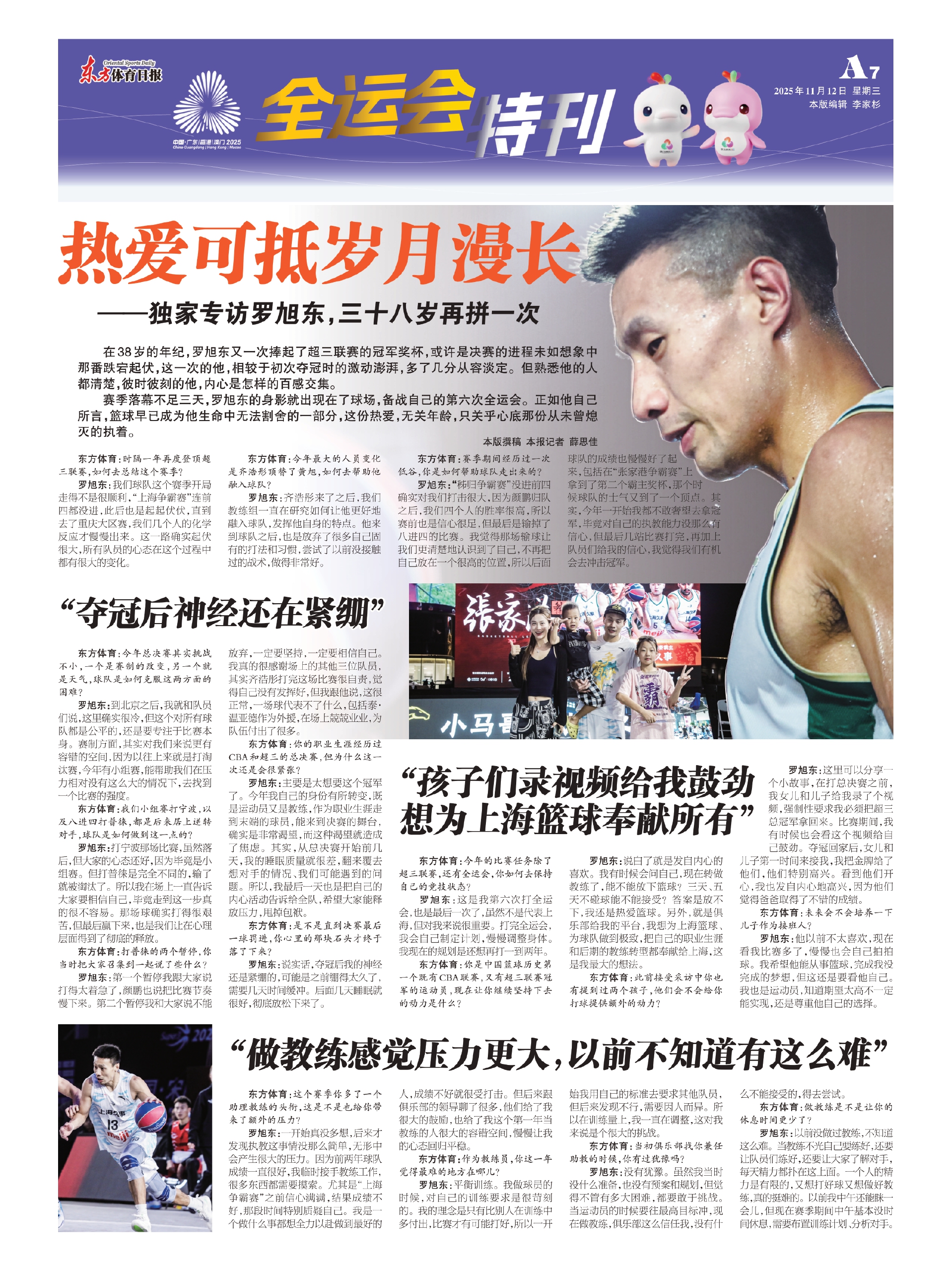 罗旭东:说白了就是发自内心的喜欢。我有时候会问自己,现在转做教练了,能不能放下篮球?三天、五天不碰球能不能接受?答案是放不下,我还是热爱篮球。另外,就是俱乐部给我的平台,我想为上海篮球、为球队做到极致,把自己的职业生涯和后期的教练转型都奉献给上海,这是我最大的想法。