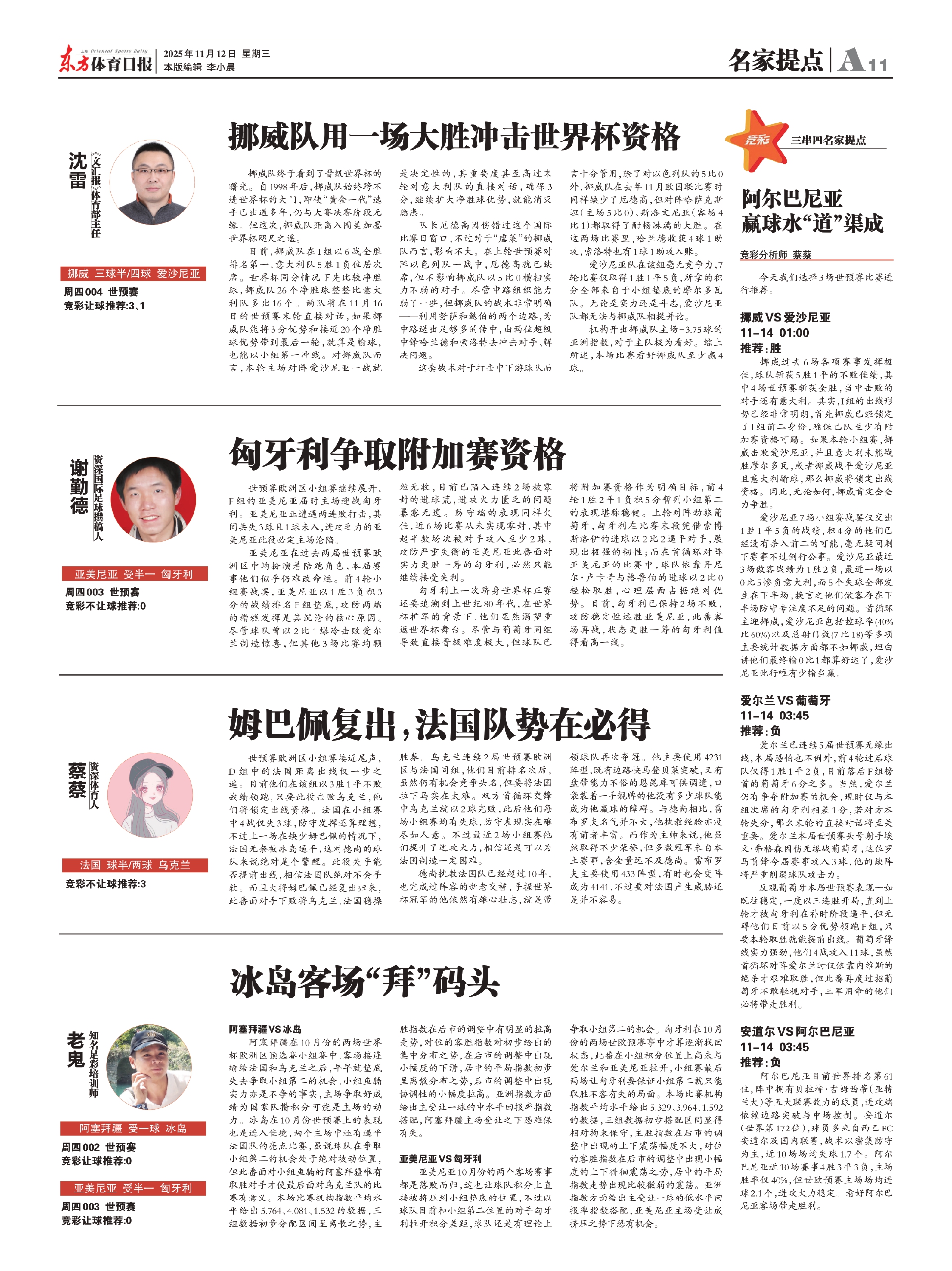 挪威队终于看到了晋级世界杯的曙光。自1998年后,挪威队始终跨不进世界杯的大门,即使“黄金一代”选手已出道多年,仍与大赛决赛阶段无缘。但这次,挪威队距离入围美加墨世界杯咫尺之遥。