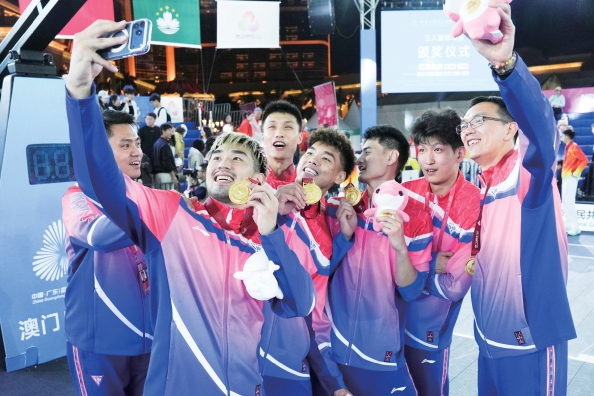 北京时间11月15日,第十五届全运会男子三人篮球项目决赛在上海队与山东队之间展开争夺,最终由彭飞挂帅,颜鹏、郭瀚宇、朱渊博和马典成组成的上海队以20比18惊险取胜,凭借五战全胜的战绩,为上海市代表团再添一金。
