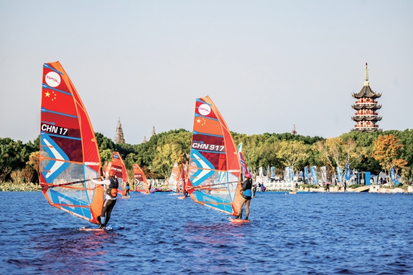 中国国际帆板大师赛是由中国帆船帆板运动协会、上海市体育总会与青浦区人民政府共同主办的国际帆板赛事,首届全国帆板大师赛举办于2018年。2023年,上海将其引进并落户青浦区金坞半岛。2024年,全国帆板大师赛升级为国际赛事,更名为中国国际帆板大师赛。到今年,赛事再度升级并走进元荡湖,获世界帆联正式批准成为奥运级别积分赛,竞技水平与国际化程度再上新台阶。
