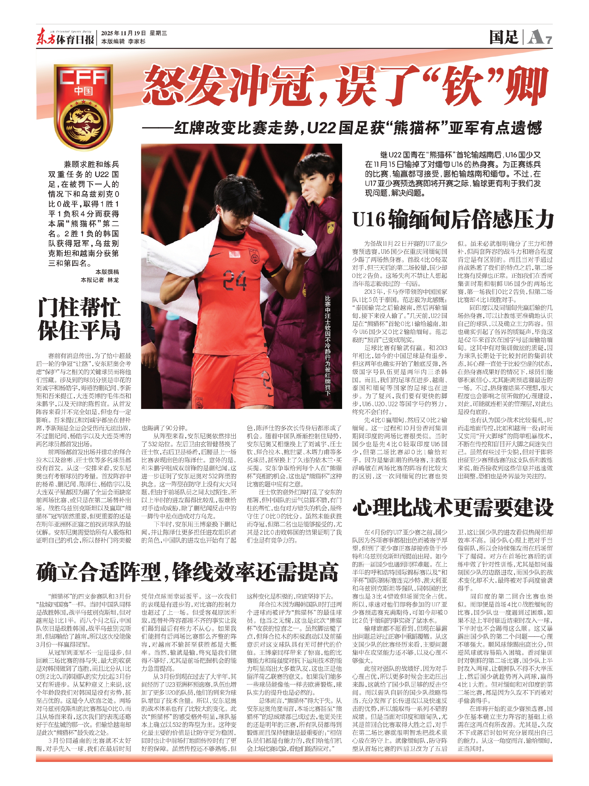 输球谁都不愿看到,但现在暴露出问题总好过正赛中重蹈覆辙。从这支国少队的比赛经历来看,主要问题集中在攻坚能力还不够,以及心理不够强大。