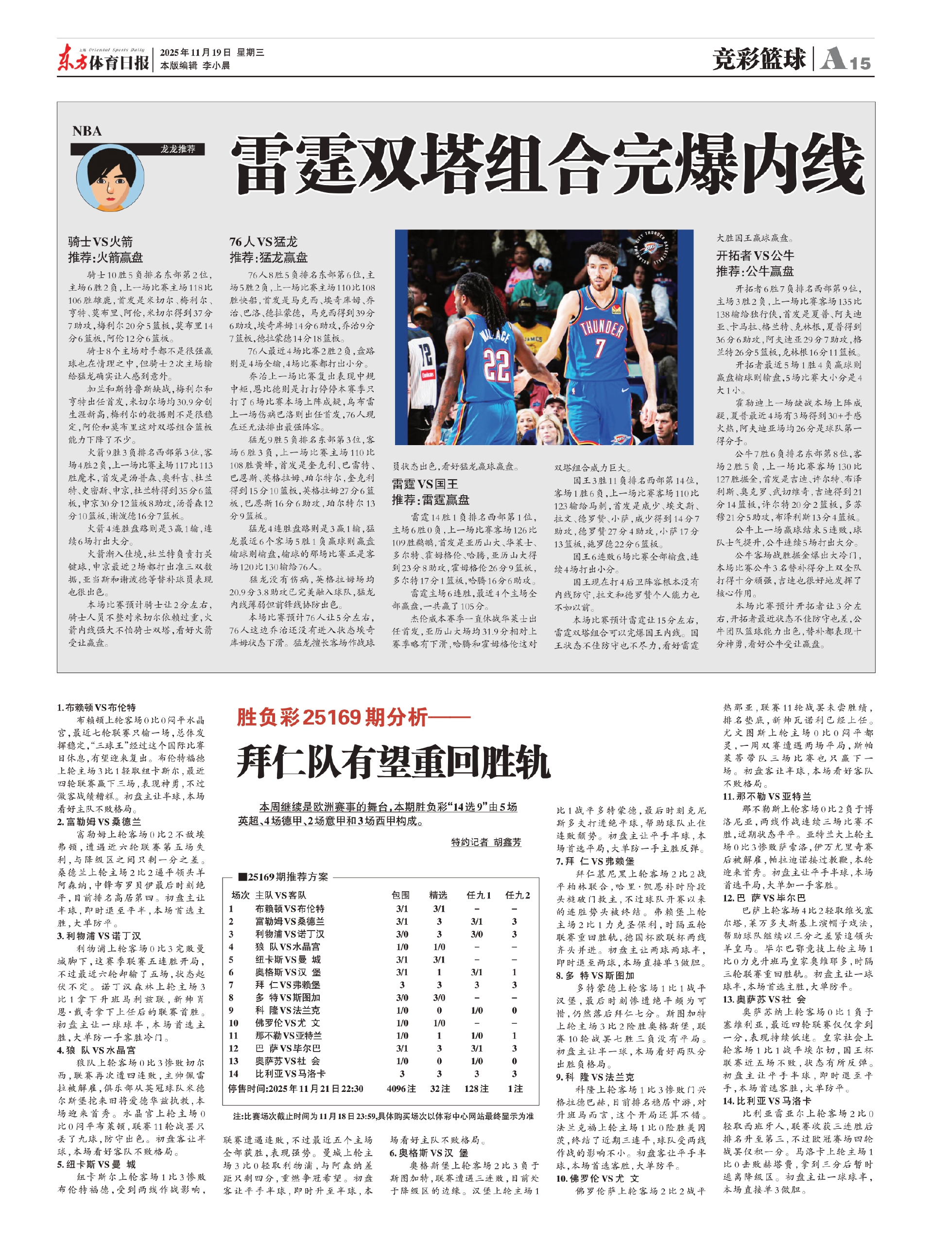 杰伦威本赛季一直休战华莱士出任首发,亚历山大场均31.9分相对上赛季略有下滑,哈腾和霍姆格伦这对双塔组合威力巨大。