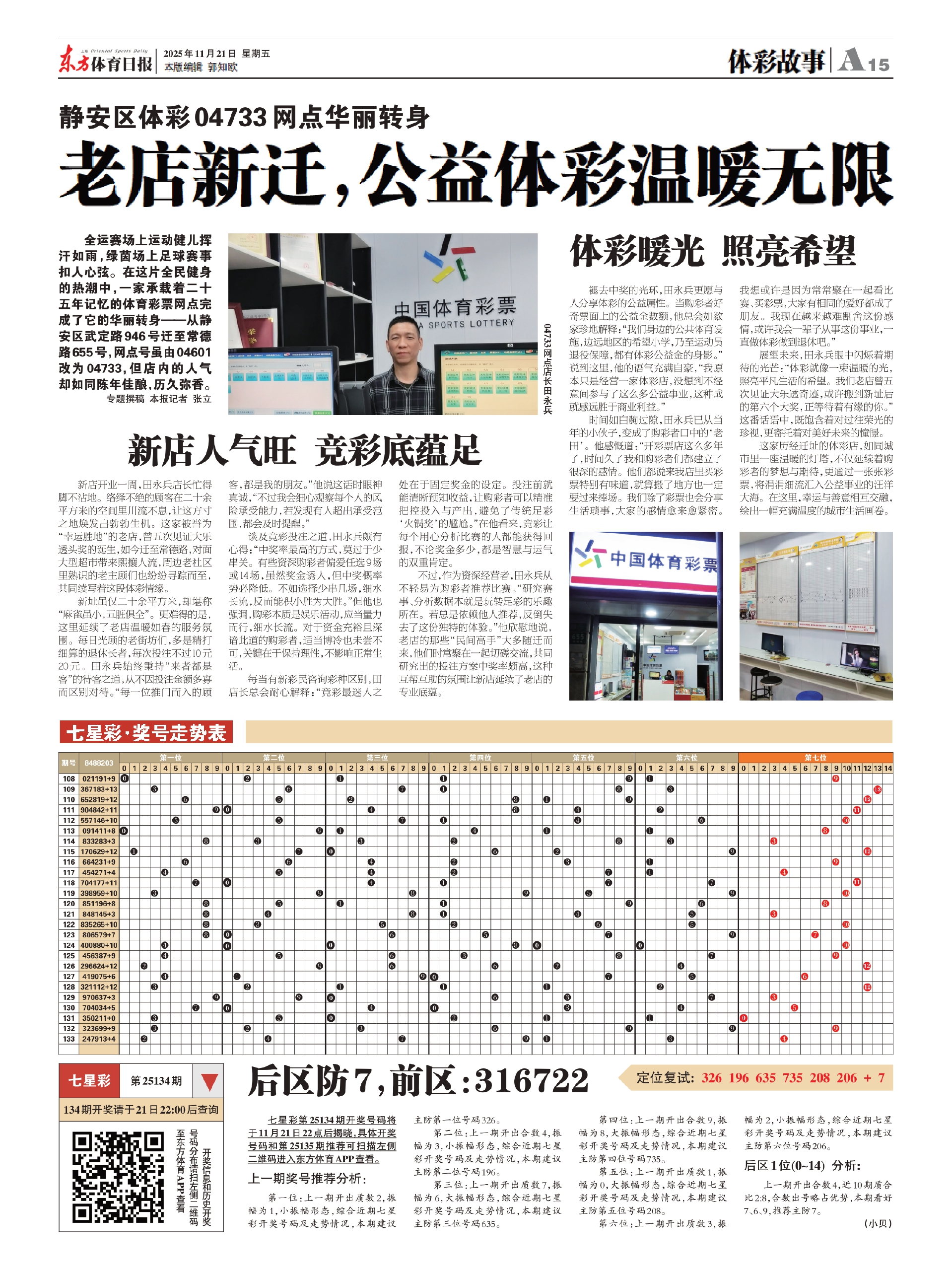 全运赛场上运动健儿挥汗如雨,绿茵场上足球赛事扣人心弦。在这片全民健身的热潮中,一家承载着二十五年记忆的体育彩票网点完成了它的华丽转身——从静安区武定路946号迁至常德路655号,网点号虽由04601改为04733,但店内的人气却如同陈年佳酿,历久弥香。