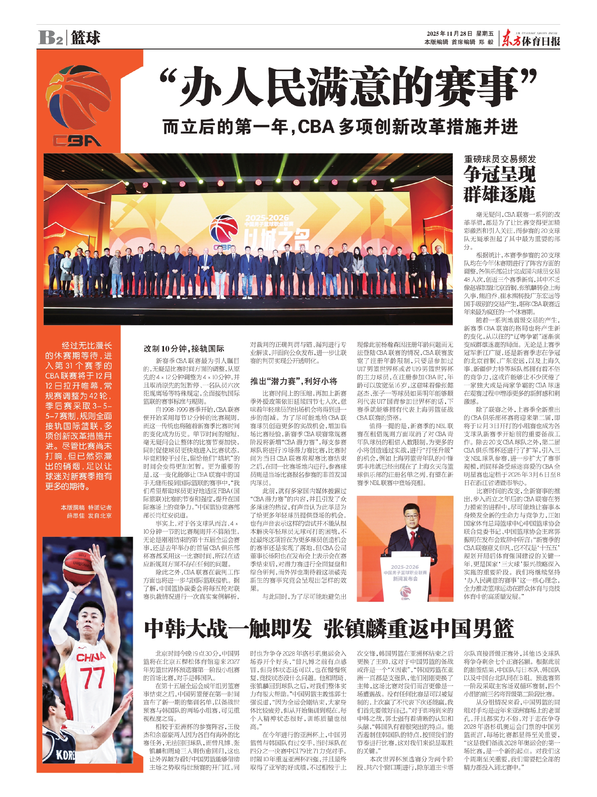 比赛时间的改变,全新赛事的推出,步入而立之年后的CBA联赛在努力摸索的进程中,尽可能地让赛事本身焕发全新的生命力与竞争力,正如国家体育总局篮球中心中国篮球协会联合党委书记、中国篮球协会主席郭振明在发布会致辞中所言:“新赛季的CBA联赛意义非凡,它不仅是‘十五五’规划开局后体育强国建设的关键一年,更是国家‘三大球’振兴战略深入实施的重要阶段。我们将继续坚持‘办人民满意的赛事’这一核心理念,全力推动篮球运动在群众体育与竞技体育中的高质量发展。”