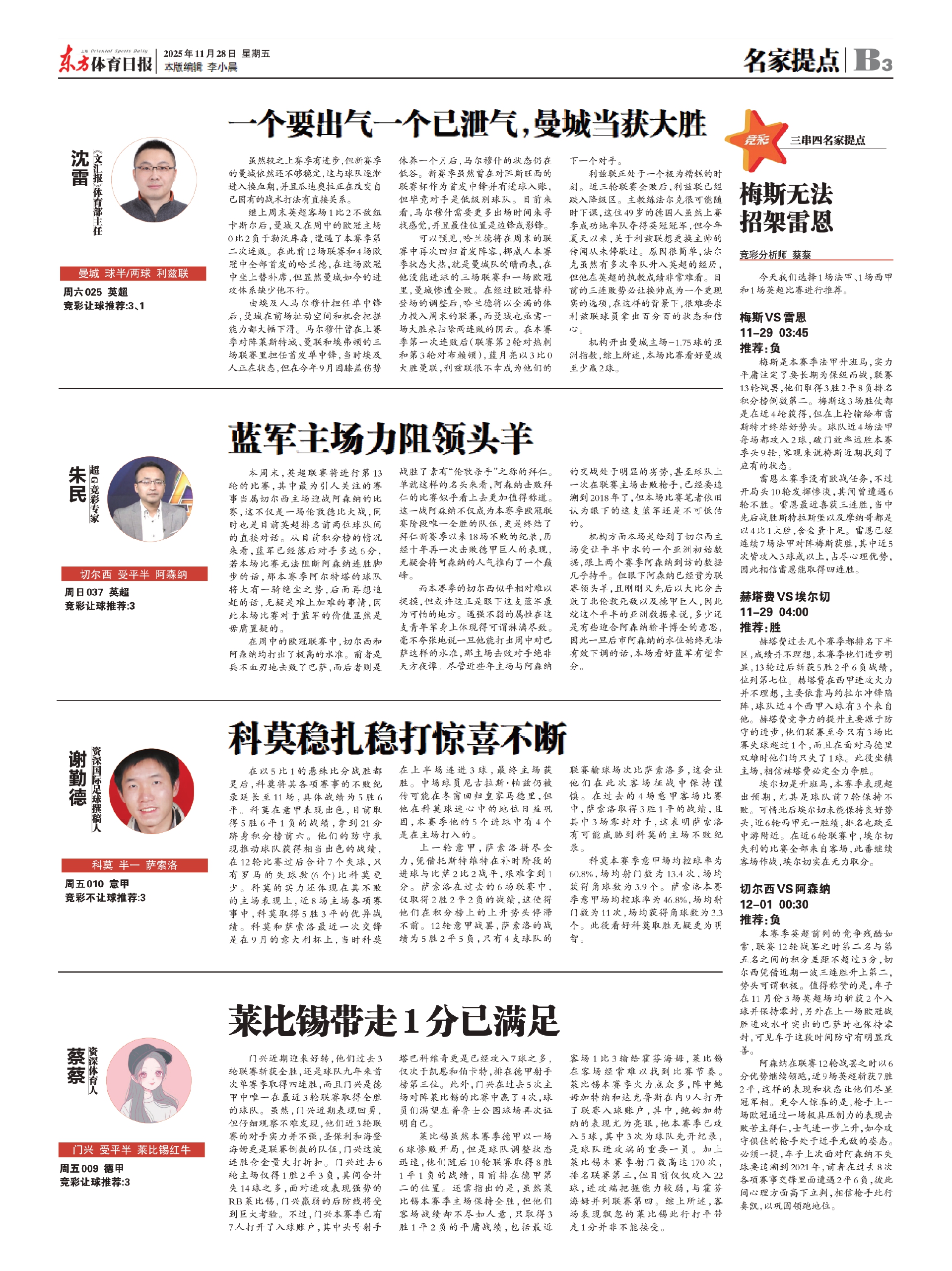 可以预见,哈兰德将在周末的联赛中再次回归首发阵容,挪威人本赛季状态火热,就是曼城队的晴雨表,在他没能进球的三场联赛和一场欧冠里,曼城惨遭全败。在经过欧冠替补登场的调整后,哈兰德将以全满的体力投入周末的联赛,而曼城也亟需一场大胜来扫除两连败的阴云。在本赛季第一次连败后(联赛第2轮对热刺和第3轮对布赖顿),蓝月亮以3比0大胜曼联,利兹联很不幸成为他们的下一个对手。