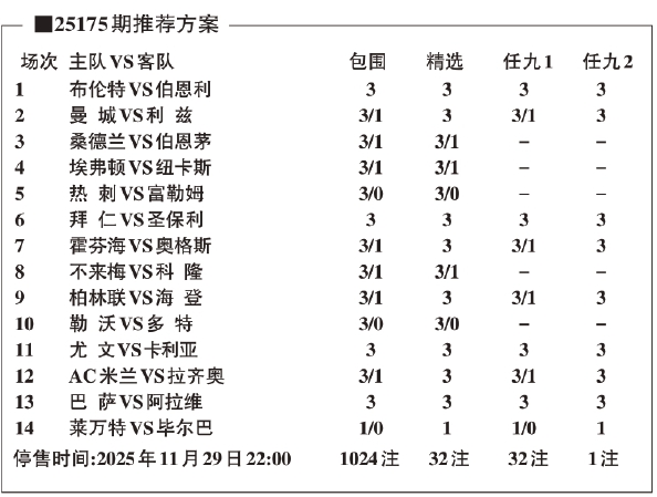 本周继续是欧洲赛事的舞台,本期胜负彩“14选9”由5场英超、5场德甲、2场意甲和2场西甲构成。