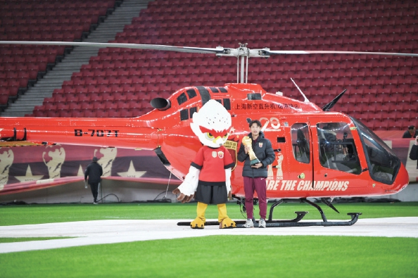 上海市人民政府副市长解冬向球队队长王燊超赠送了定制冠军奖杯刺绣,冀望海港队未来再创佳绩。