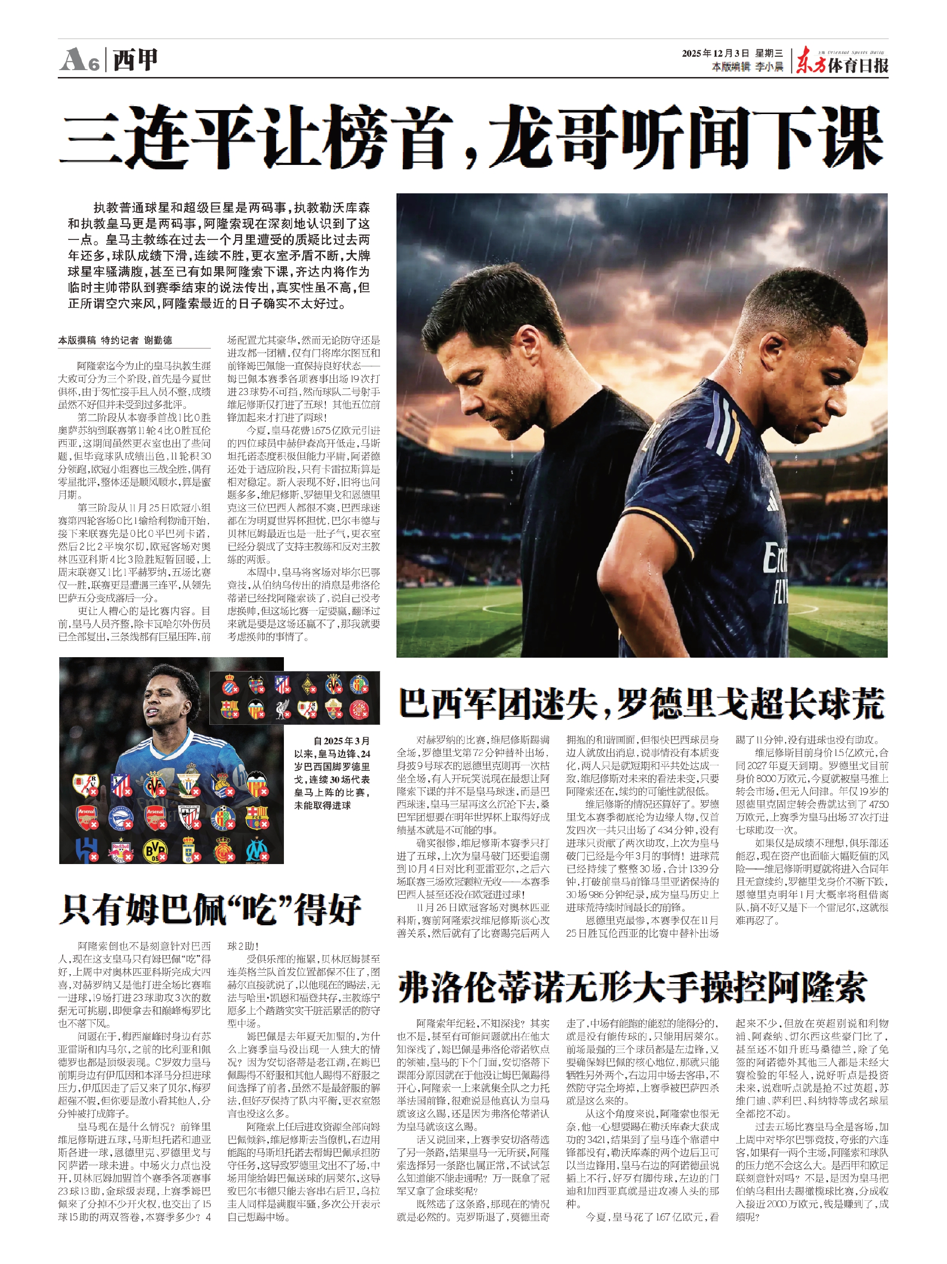 阿隆索倒也不是刻意针对巴西人,现在这支皇马只有姆巴佩“吃”得好,上周中对奥林匹亚科斯完成大四喜,对赫罗纳又是他打进全场比赛唯一进球,19场打进23球助攻3次的数据无可挑剔,即便拿去和巅峰梅罗比也不落下风。