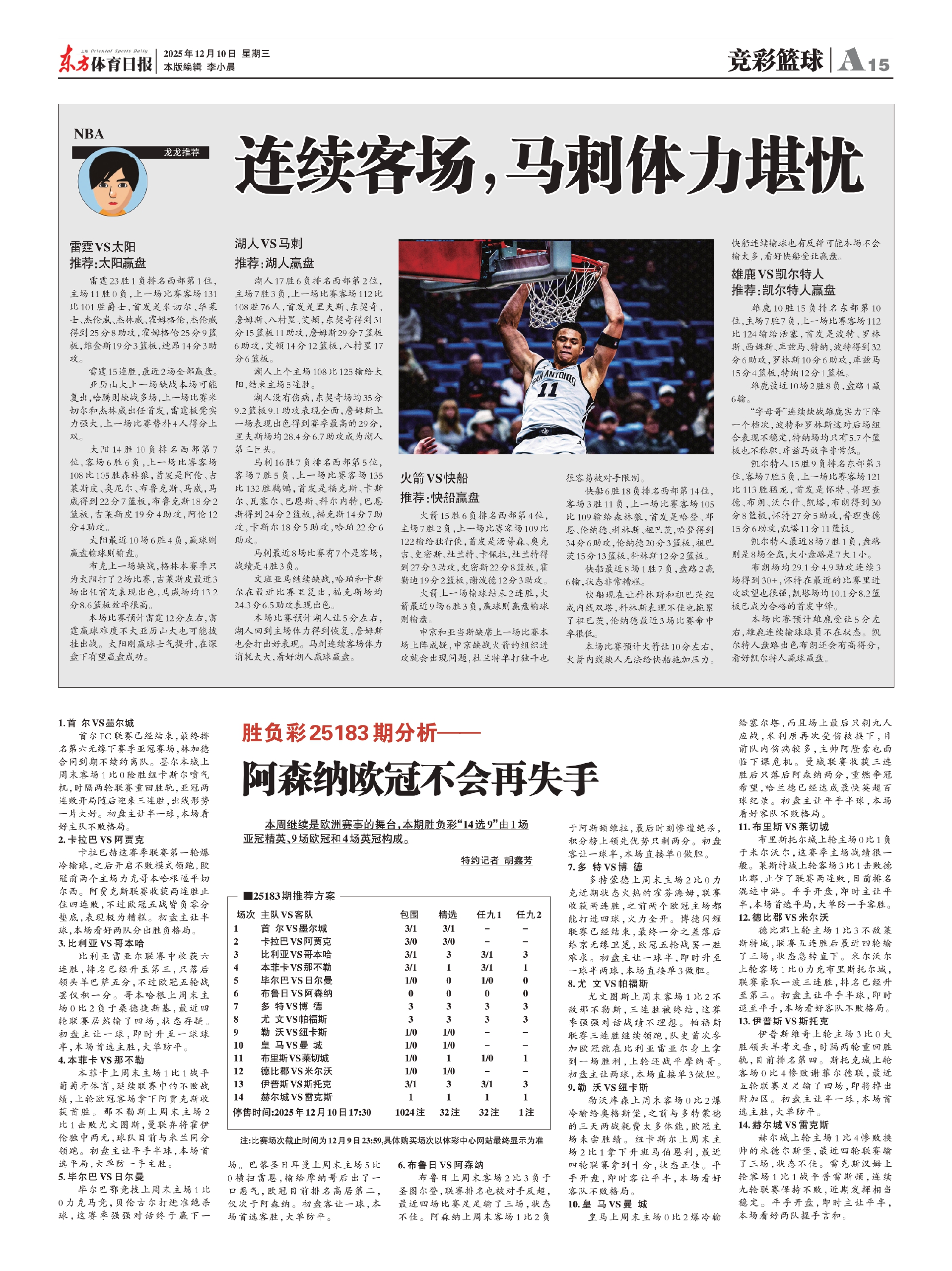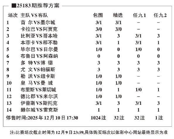 注:比赛场次截止时间为12月9日23:59,具体购买场次以体彩中心网站最终显示为准