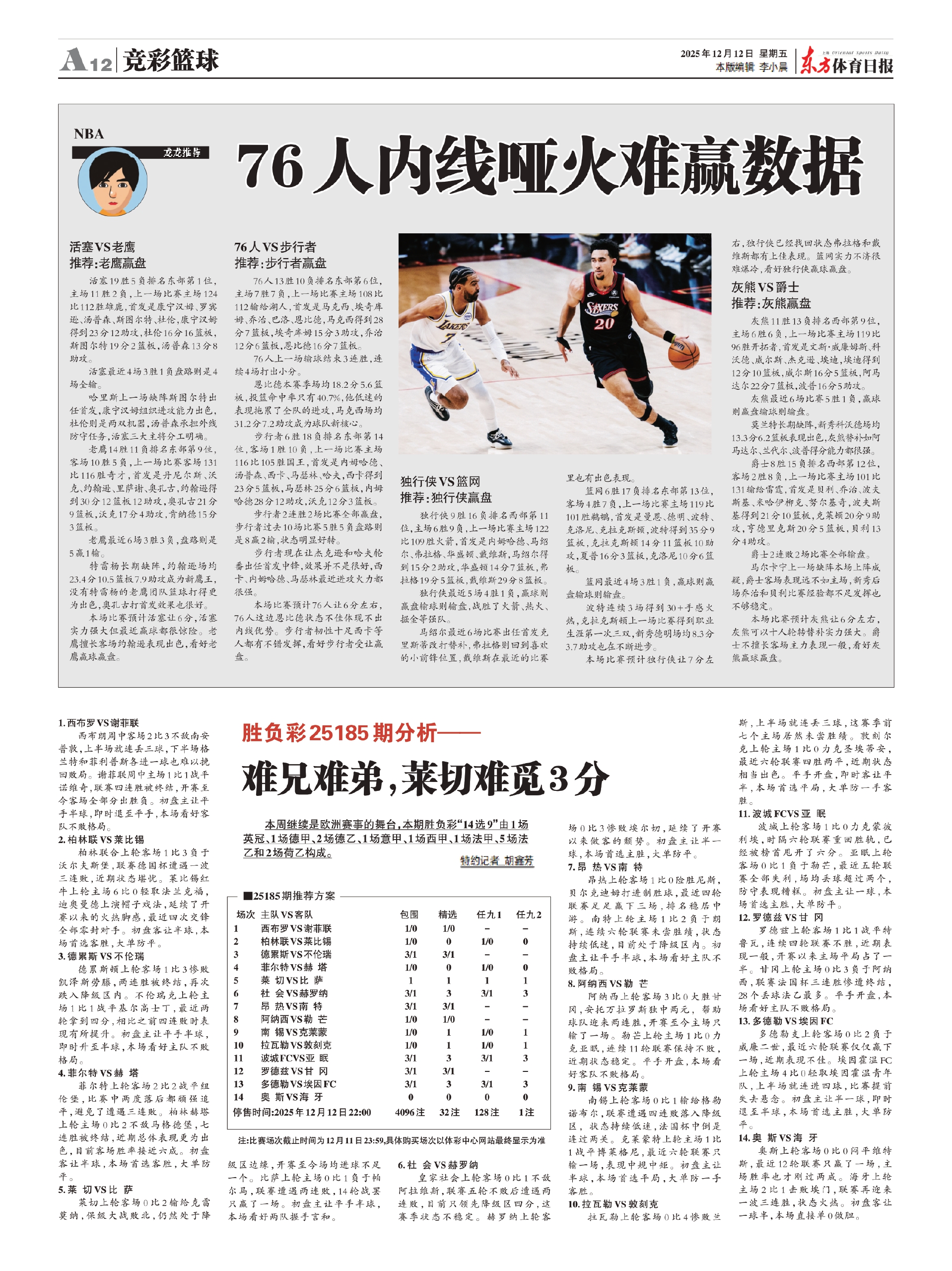 本场比赛预计76人让6分左右,76人这边恩比德状态不佳体现不出内线优势。步行者韧性十足西卡等人都有不错发挥,看好步行者受让赢盘。