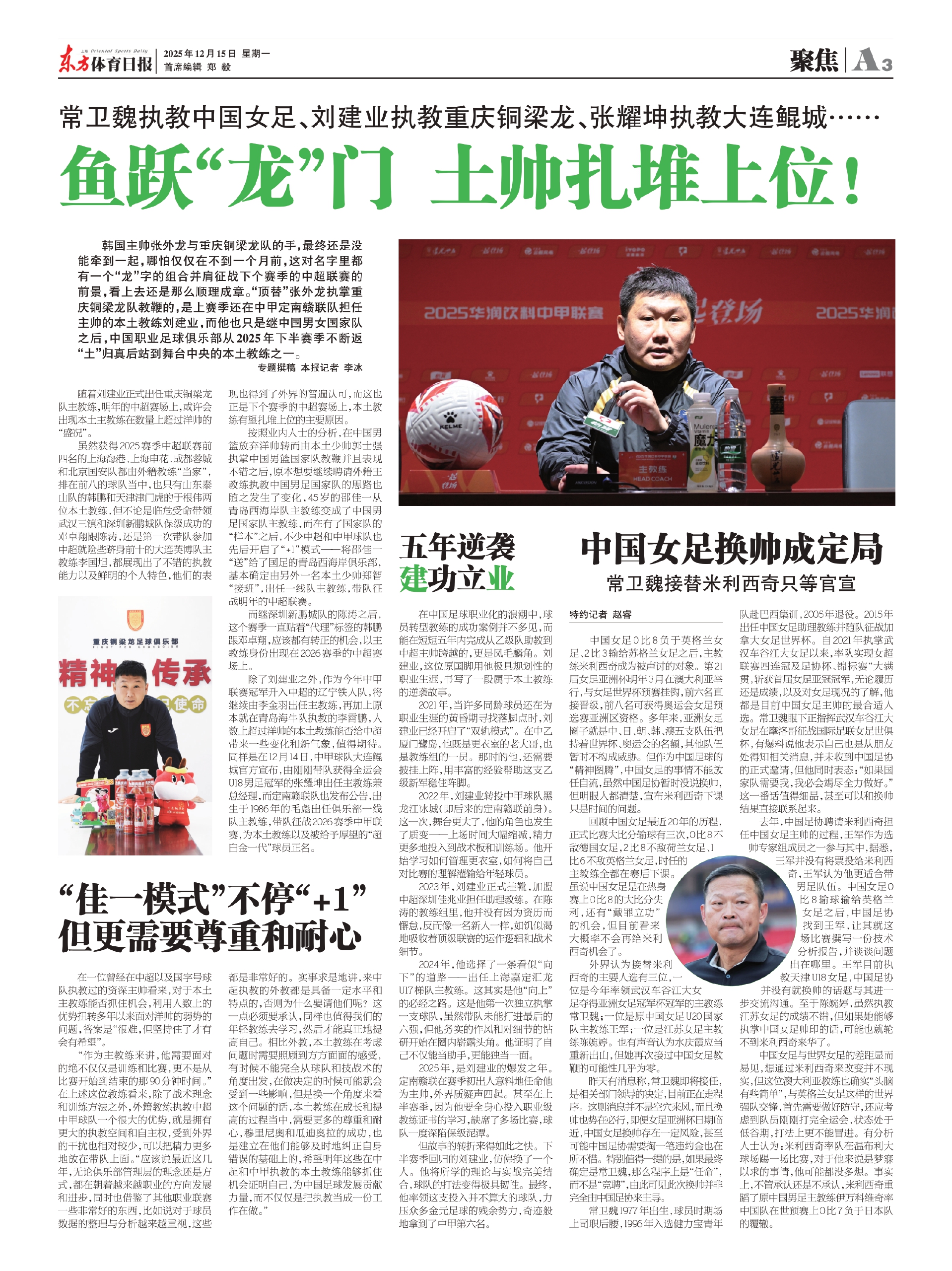 韩国主帅张外龙与重庆铜梁龙队的手,最终还是没能牵到一起,哪怕仅仅在不到一个月前,这对名字里都有一个“龙”字的组合并肩征战下个赛季的中超联赛的前景,看上去还是那么顺理成章。“顶替”张外龙执掌重庆铜梁龙队教鞭的,是上赛季还在中甲定南赣联队担任主帅的本土教练刘建业,而他也只是继中国男女国家队之后,中国职业足球俱乐部从2025年下半赛季不断返“土”归真后站到舞台中央的本土教练之一。