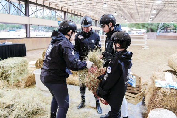给马匹喂食干草,这件听起来不算太难的事,在马房管理挑战大赛的实操环节,却也给小选手们实实在在地上了生动一课。