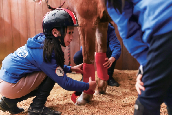 马房管理挑战大赛,它是“华天·人马一心”公益项目中的重要内容板块,也是在国际马联获得年度激励奖的项目。马房管理挑战大赛以马房管理与马匹福利为核心主题,通过理论与实践相结合的教育体系,将马术的“非竞技部分”转化为青少年成长的课堂。孩子们在活动中学习饲养、护理、安全与管理知识,更重要的是,帮助他们在实践中体会责任、协作与同理心。