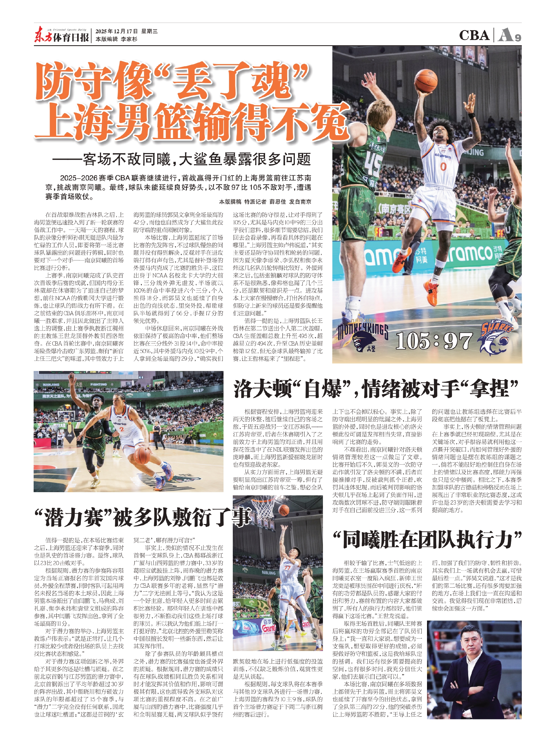 2025-2026赛季CBA联赛继续进行,首战赢得开门红的上海男篮前往江苏南京,挑战南京同曦。最终,球队未能延续良好势头,以不敌97比105不敌对手,遭遇赛季首场败仗。