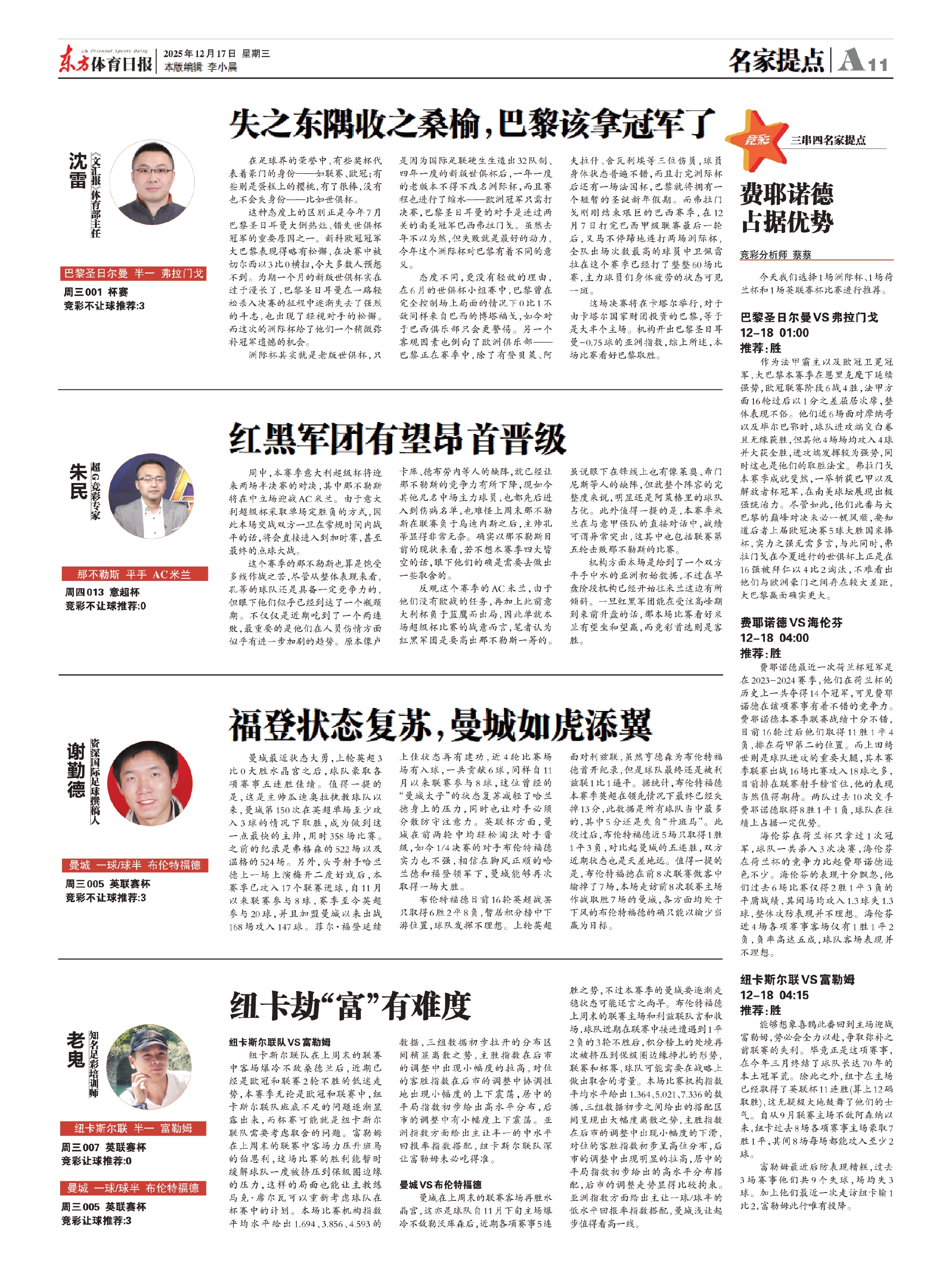 态度不同,更没有轻敌的理由,在6月的世俱杯小组赛中,巴黎曾在完全控制场上局面的情况下0比1不敌同样来自巴西的博塔福戈,如今对于巴西俱乐部只会更警惕。另一个客观因素也倒向了欧洲俱乐部——巴黎正在赛季中,除了有登贝莱、阿夫拉什、舍瓦利埃等三位伤员,球员身体状态普遍不错,而且打完洲际杯后还有一场法国杯,巴黎就将拥有一个短暂的圣诞新年假期。而弗拉门戈刚刚结束艰巨的巴西赛季,在12月7日打完巴西甲级联赛最后一轮后,又马不停蹄地连打两场洲际杯,全队出场次数最高的球员中卫佩雷拉在这个赛季已经打了整整60场比赛,主力球员们身体疲劳的状态可见一斑。