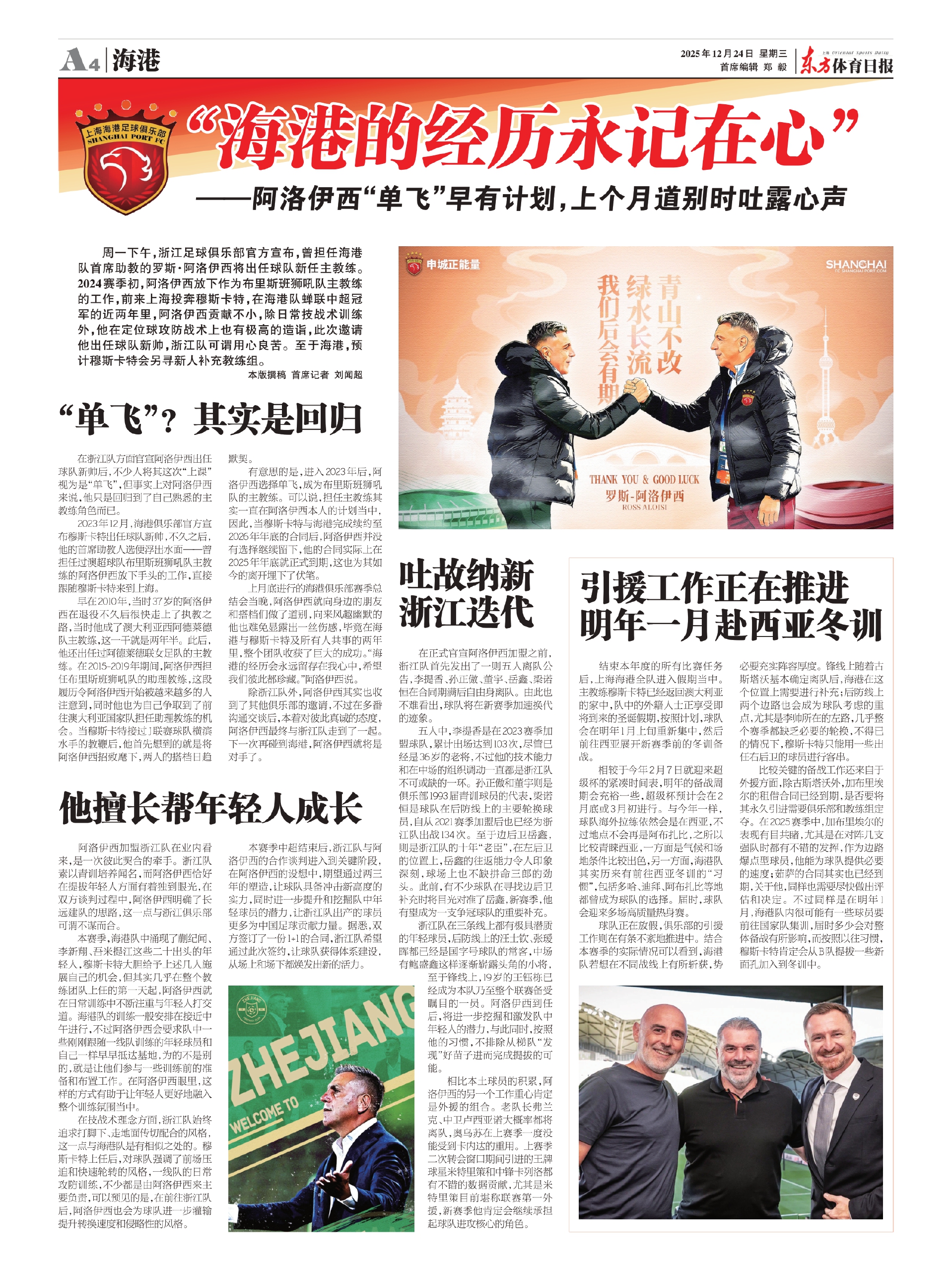 上月底进行的海港俱乐部赛季总结会当晚,阿洛伊西就向身边的朋友和搭档们做了道别,向来风趣幽默的他也难免显露出一丝伤感,毕竟在海港与穆斯卡特及所有人共事的两年里,整个团队收获了巨大的成功。“海港的经历会永远留存在我心中,希望我们彼此都珍藏。”阿洛伊西说。