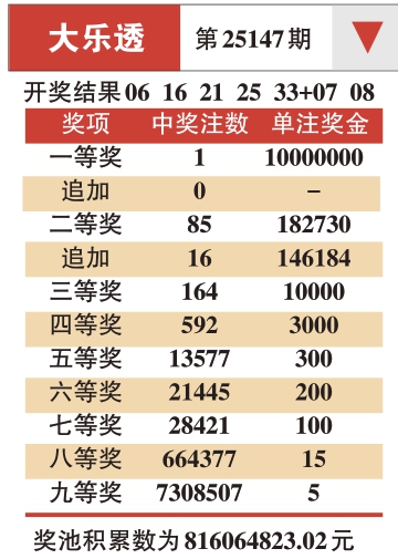 大乐透 第25147期