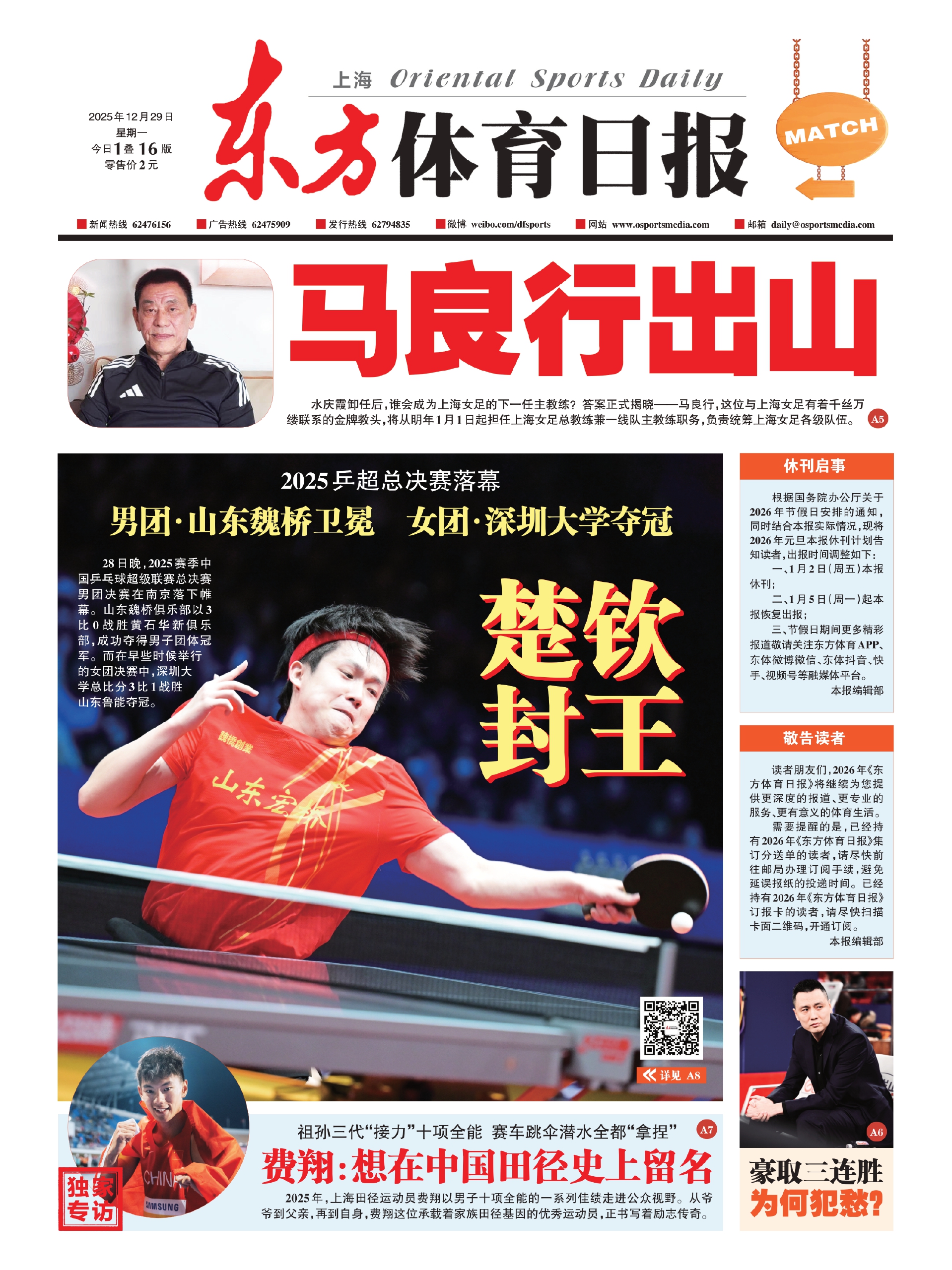 水庆霞卸任后,谁会成为上海女足的下一任主教练?答案正式揭晓——马良行,这位与上海女足有着千丝万缕联系的金牌教头,将从明年1月1日起担任上海女足总教练兼一线队主教练职务,负责统筹上海女足各级队伍。 A5
