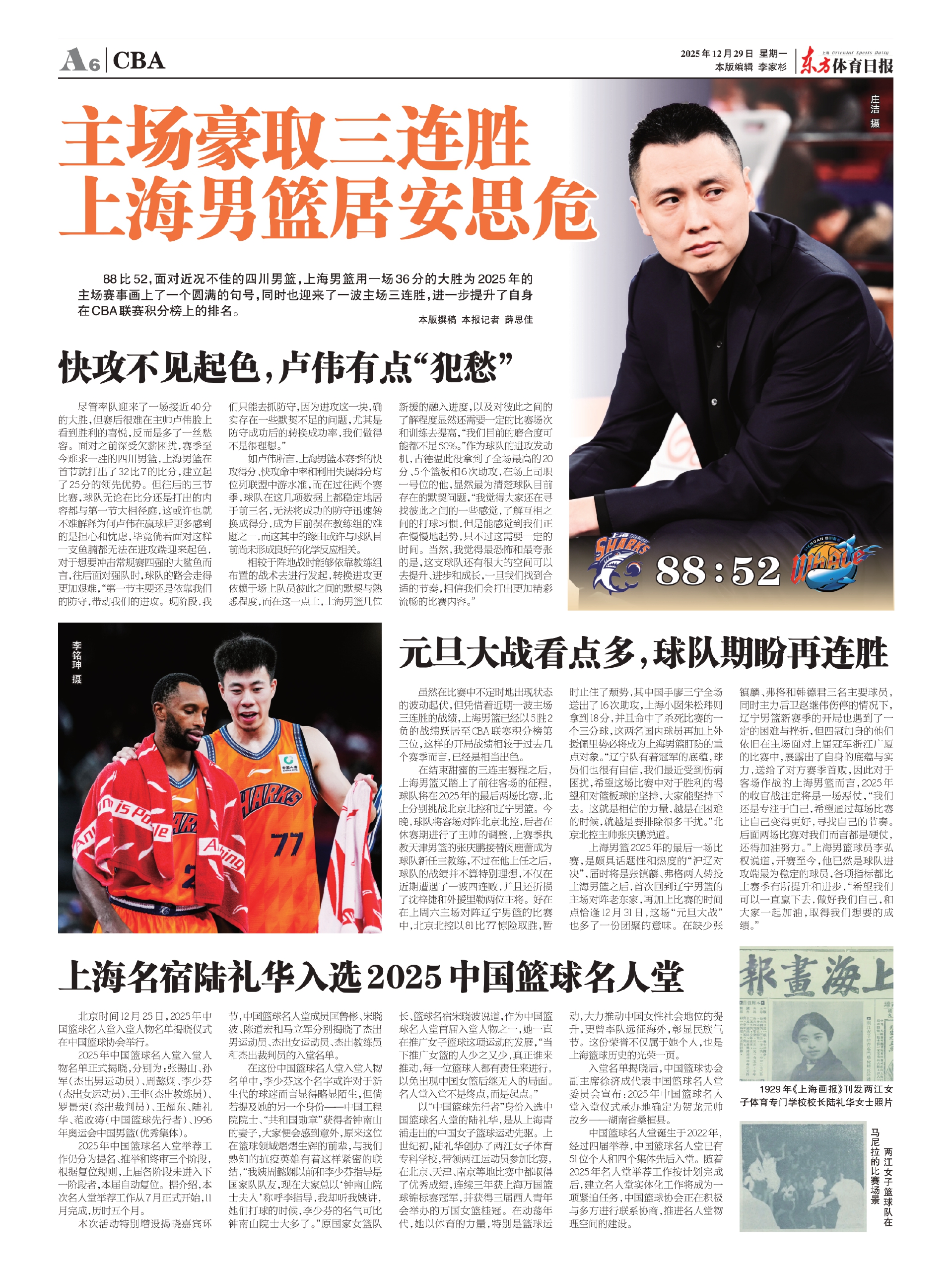 88比52,面对近况不佳的四川男篮,上海男篮用一场36分的大胜为2025年的主场赛事画上了一个圆满的句号,同时也迎来了一波主场三连胜,进一步提升了自身在CBA联赛积分榜上的排名。