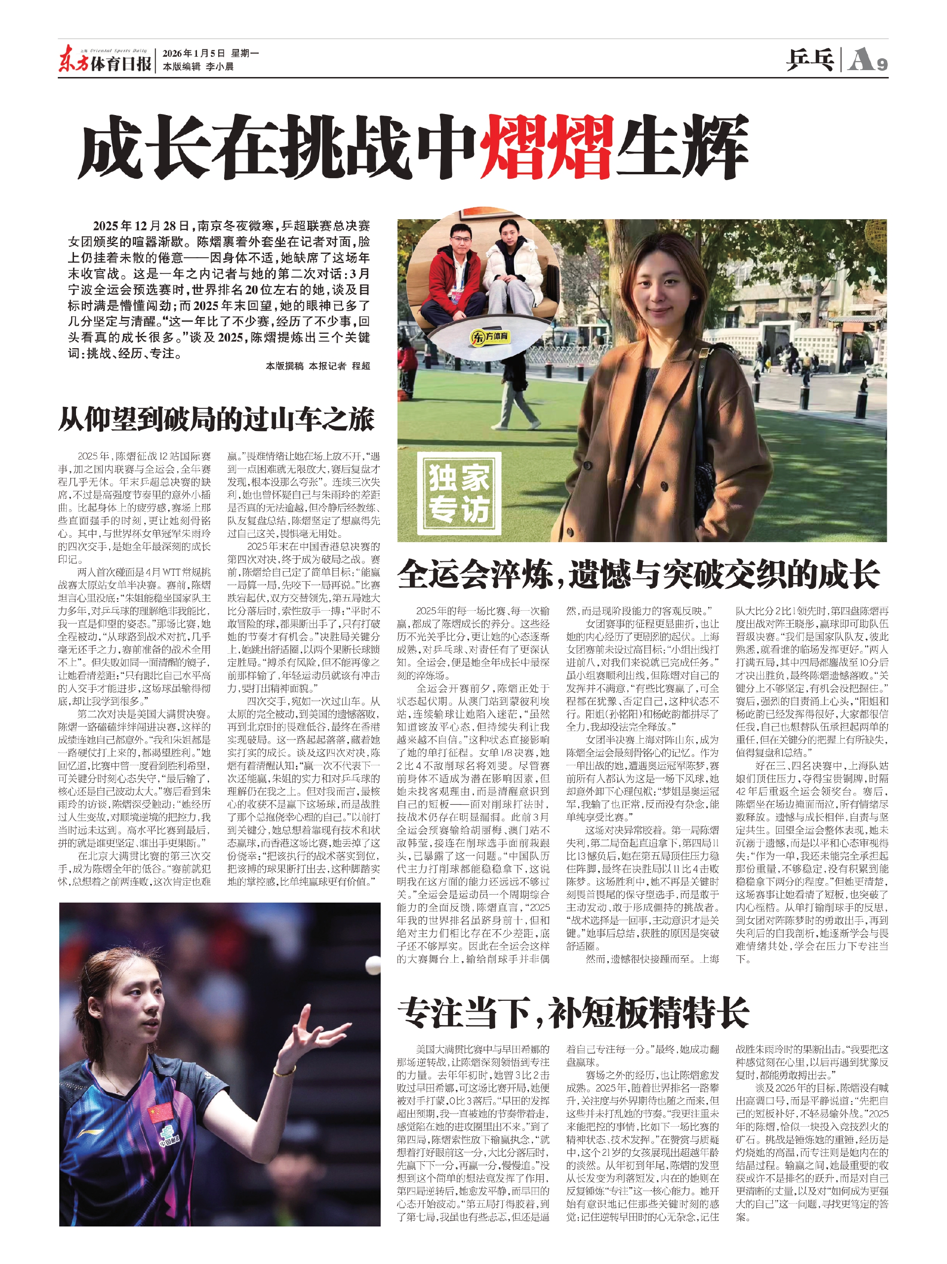2025年的每一场比赛、每一次输赢,都成了陈熠成长的养分。这些经历不光关乎比分,更让她的心态逐渐成熟,对乒乓球、对责任有了更深认知。全运会,便是她全年成长中最深刻的淬炼场。