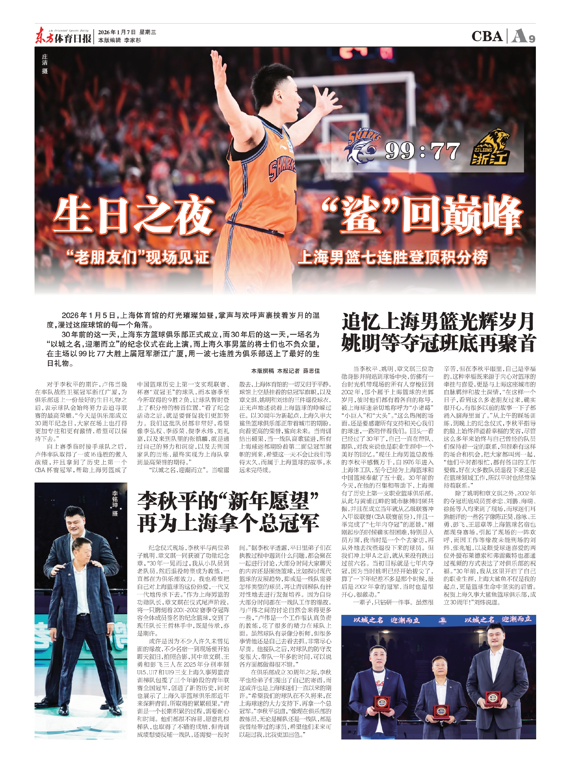 30年前的这一天,上海东方篮球俱乐部正式成立,而30年后的这一天,一场名为“以城之名,迎潮而立”的纪念仪式在此上演,而上海久事男篮的将士们也不负众望,在主场以99比77大胜上届冠军浙江广厦,用一波七连胜为俱乐部送上了最好的生日礼物。
