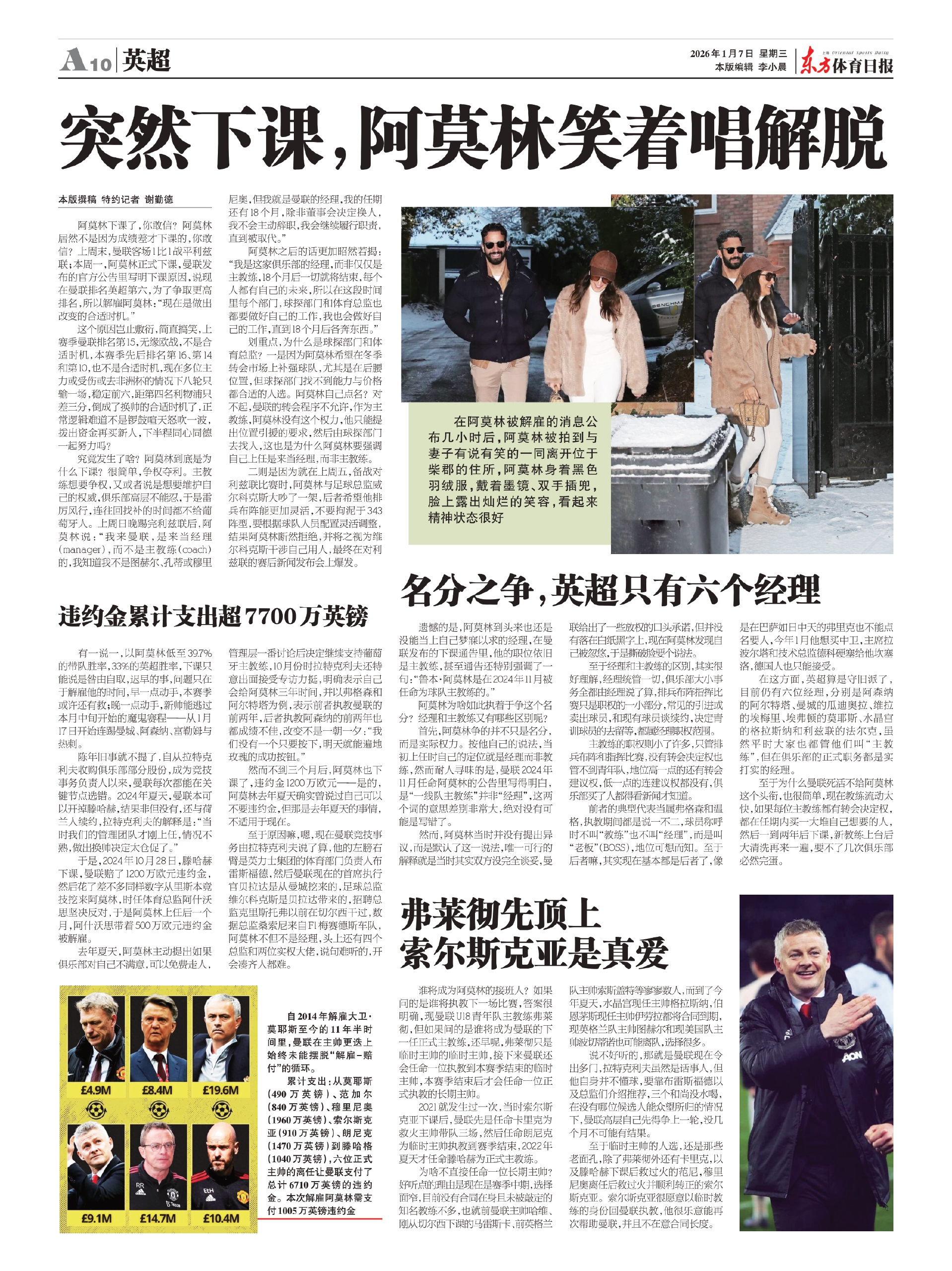 在阿莫林被解雇的消息公布几小时后,阿莫林被拍到与妻子有说有笑的一同离开位于柴郡的住所,阿莫林身着黑色羽绒服,戴着墨镜、双手插兜,脸上露出灿烂的笑容,看起来精神状态很好