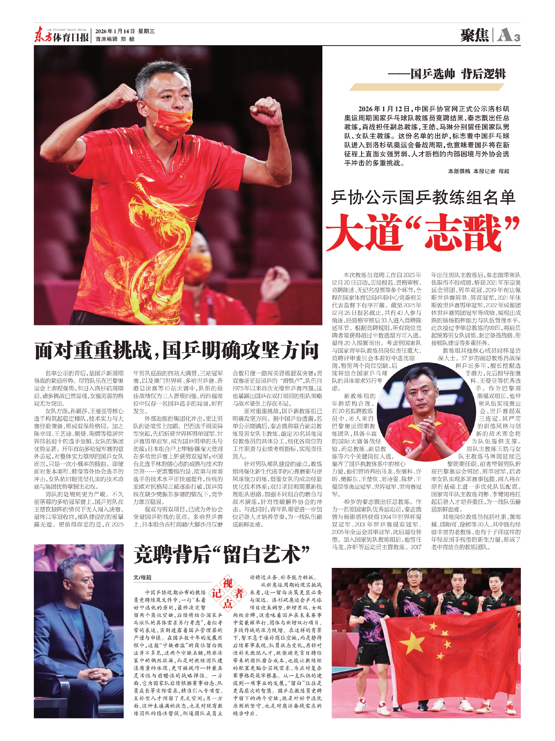 2026年1月12日,中国乒协官网正式公示洛杉矶奥运周期国家乒乓球队教练员竞聘结果,秦志戬出任总教练,肖战担任副总教练,王皓、马琳分别留任国家队男队、女队主教练。这份名单的出炉,标志着中国乒乓球队进入到洛杉矶奥运会备战周期,也意味着国乒将在新征程上直面女强男弱、人才断档的内部困境与外协会选手冲击的多重挑战。