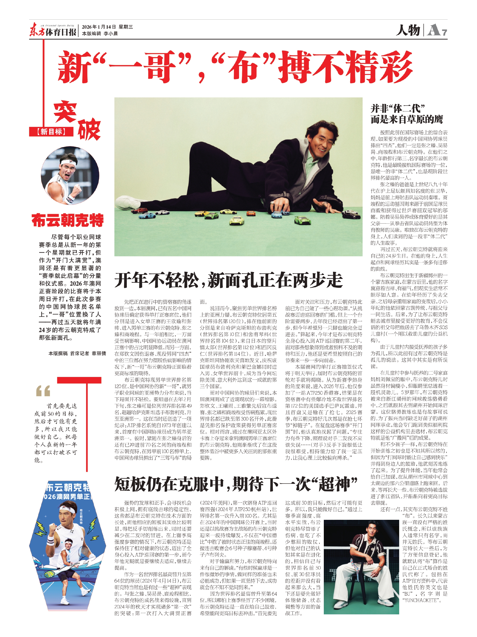 尽管每个职业网球赛季总是从新一年的第一个星期就已开打,但作为“开门大满贯”,澳网还是有着更显著的“赛季就此启幕”的分量和仪式感。2026年澳网正赛阶段的比赛将于本周日开打,在此次参赛的中国网协球员名单上,“一哥”位置换了人——再过五天就将年满24岁的布云朝克特成了那张新面孔。