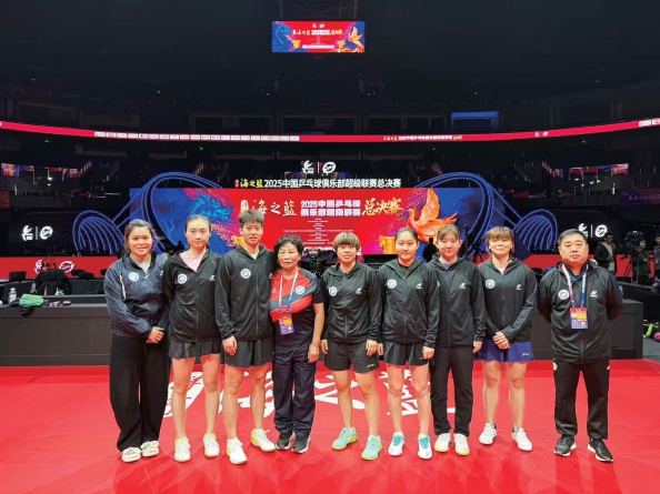 在教练团队建设方面,华理形成了老中青结合的合理梯队。2025年博士毕业留任的马越斐,成为教练团队的新生力量。乒超总决赛期间,她与臧玉瑛、回波两位教练并肩作战,在后勤保障、赛前准备会、赛事报名、运动员衔接等各个环节协同发力,让球队运转更加高效。