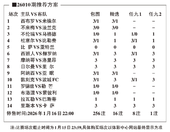 本周继续是欧洲赛事的舞台,本期胜负彩“14选9”由1场英冠、1场德甲、2场德乙、1场意甲、1场西甲、2场法甲、5场法乙和1场葡超构成。