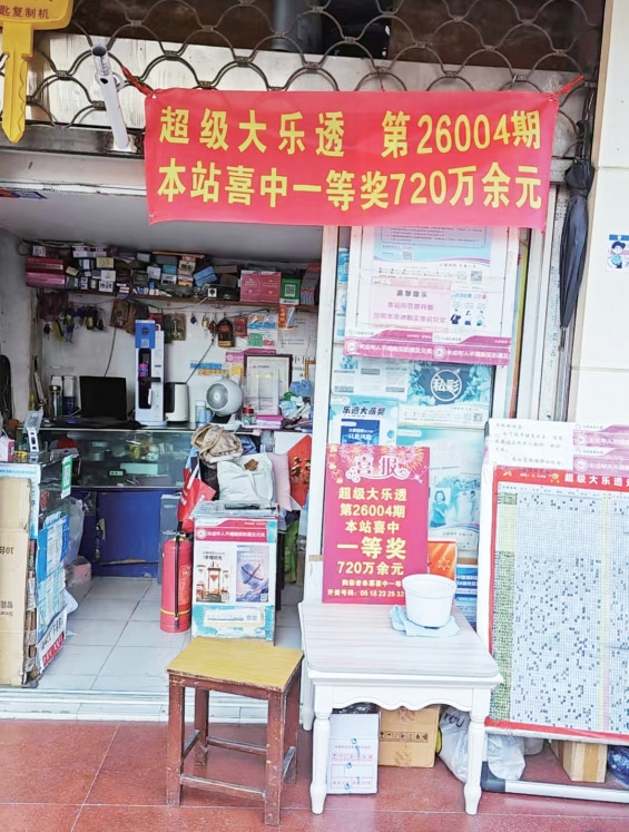 图为中出大乐透第26004期一等奖的普陀区08033体彩幸运网点