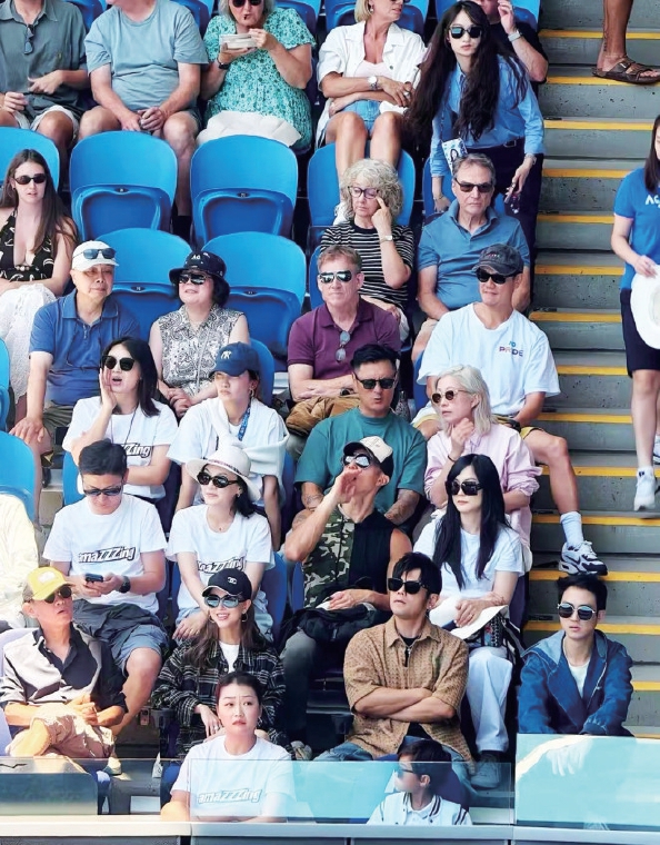 当张之臻在罗德·拉沃尔球场的蓝色硬地上挥汗如雨时,看台VIP区悄然迎来了一对特别的观众。1月18日,恰逢华语乐坛天王周杰伦47岁生日。在这个充满双重意义的日子,周杰伦与爱妻昆凌现身球场,他们的目光穿越人群,聚焦于那位身披蓝色战袍的中国选手。这场体育与娱乐的星光交汇,为这场原本略显凝重的比赛,注入了一抹温暖的异彩。