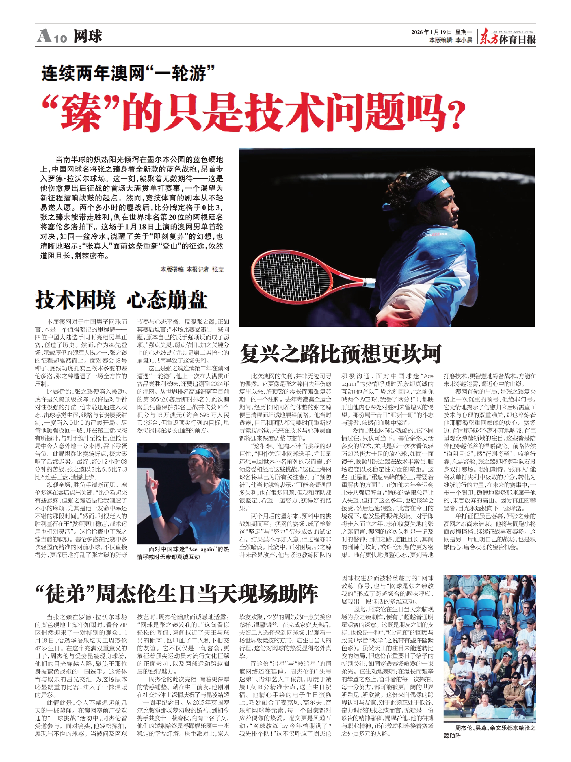 单打征程虽已落幕,但张之臻的澳网之旅尚未结束。他将与同胞小将商竣程搭档,继续征战男双赛场。这既是另一片证明自己的战场,也是积累信心、磨合状态的宝贵机会。