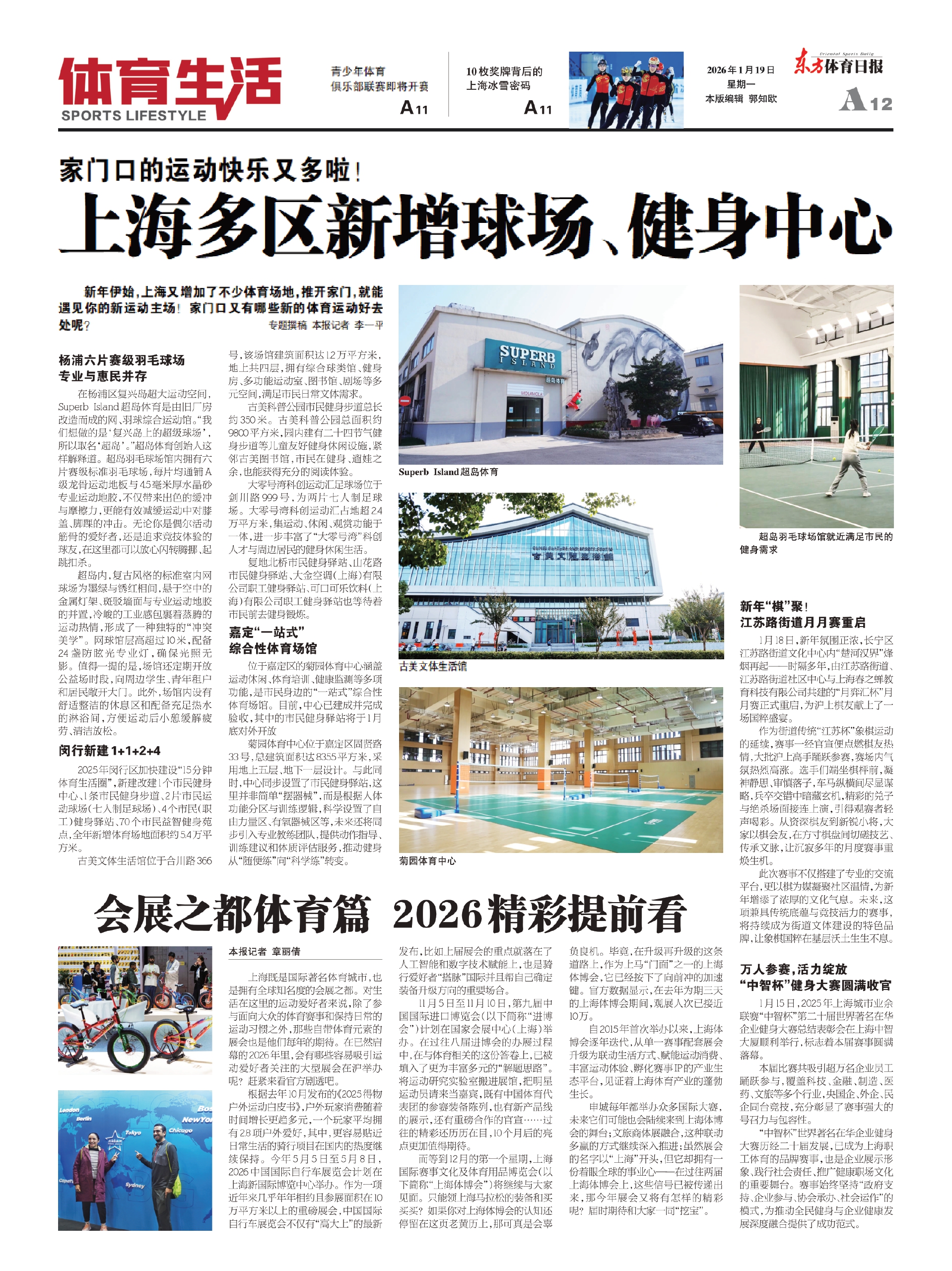新年伊始,上海又增加了不少体育场地,推开家门,就能遇见你的新运动主场!家门口又有哪些新的体育运动好去处呢? 专题撰稿 本报记者 李一平