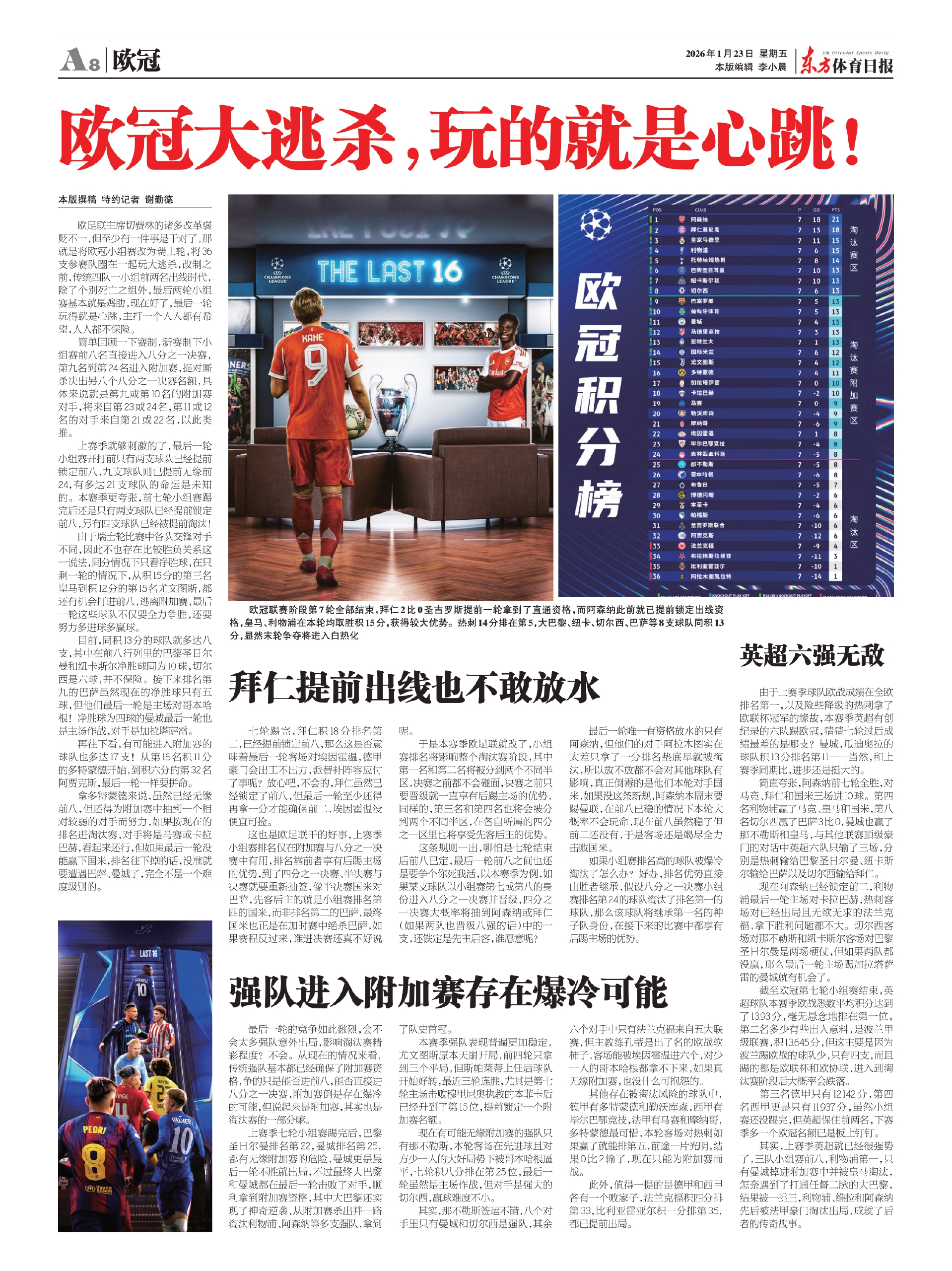 这条规则一出,哪怕是七轮结束后前八已定,最后一轮前八之间也还是要争个你死我活,以本赛季为例,如果某支球队以小组赛第七或第八的身份进入八分之一决赛并晋级,四分之一决赛大概率将抽到阿森纳或拜仁(如果两队也晋级八强的话)中的一支,还铁定是先主后客,谁愿意呢?