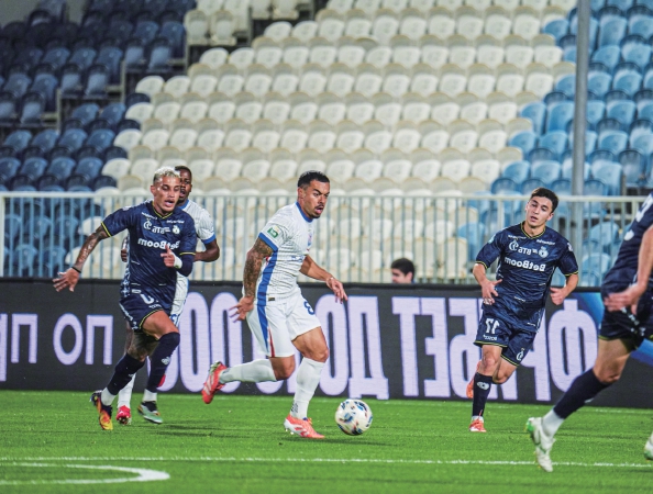 迪拜冬训期间的前两场热身赛,斯卢茨基排出的都是三名外援前锋顶在最前面的433阵型,而当他摆出同样的阵型面对全队身价高达一亿欧元的莫斯科迪纳摩时,他已经像两年前在海口时那样,在这支球队的身上打在了自己想要看到的那个烙印。