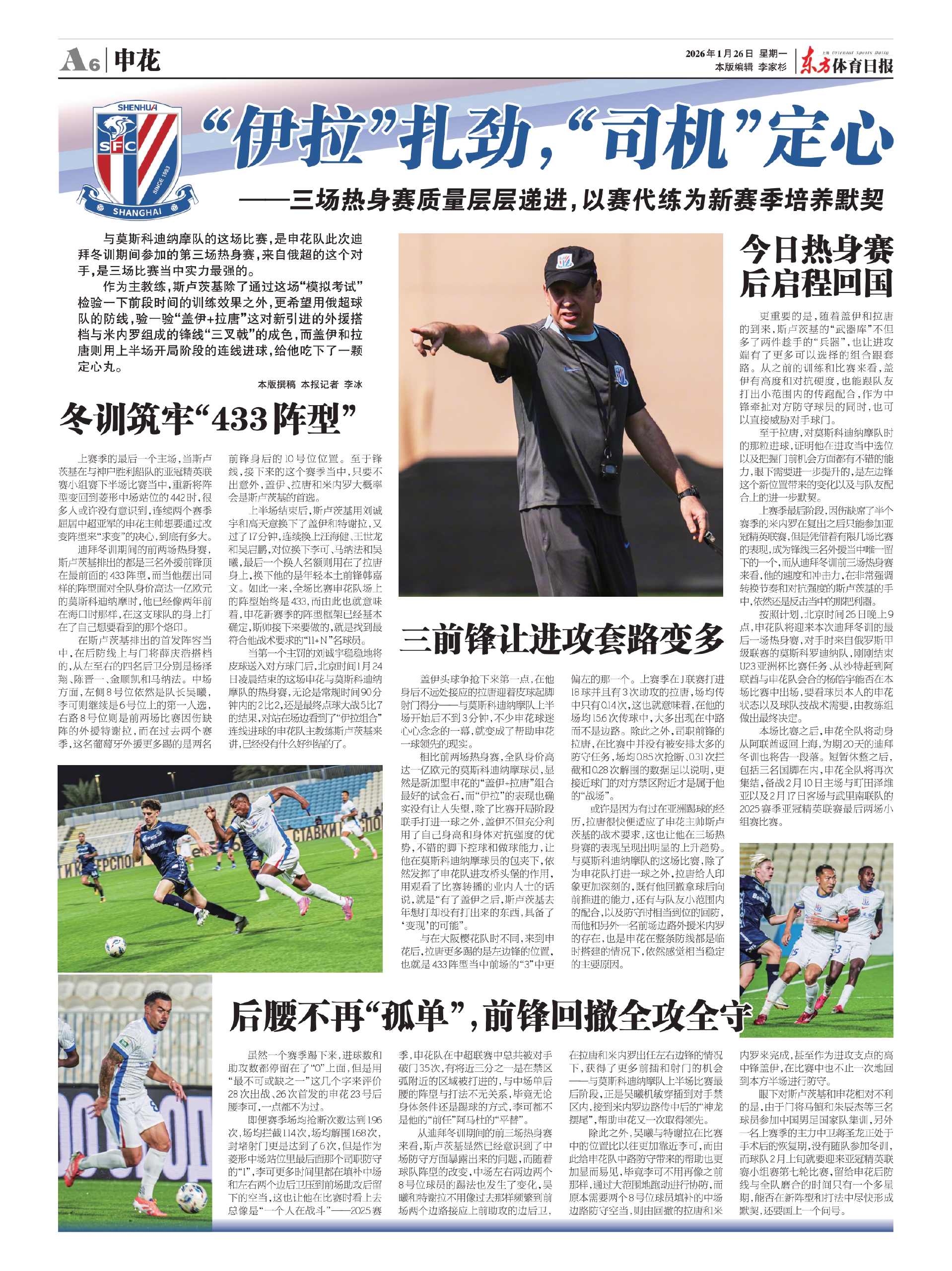 当第一个主罚的刘诚宇稳稳地将皮球送入对方球门后,北京时间1月24日凌晨结束的这场申花与莫斯科迪纳摩队的热身赛,无论是常规时间90分钟内的2比2,还是最终点球大战5比7的结果,对站在场边看到了“伊拉组合”连线进球的申花队主教练斯卢茨基来讲,已经没有什么好纠结的了。