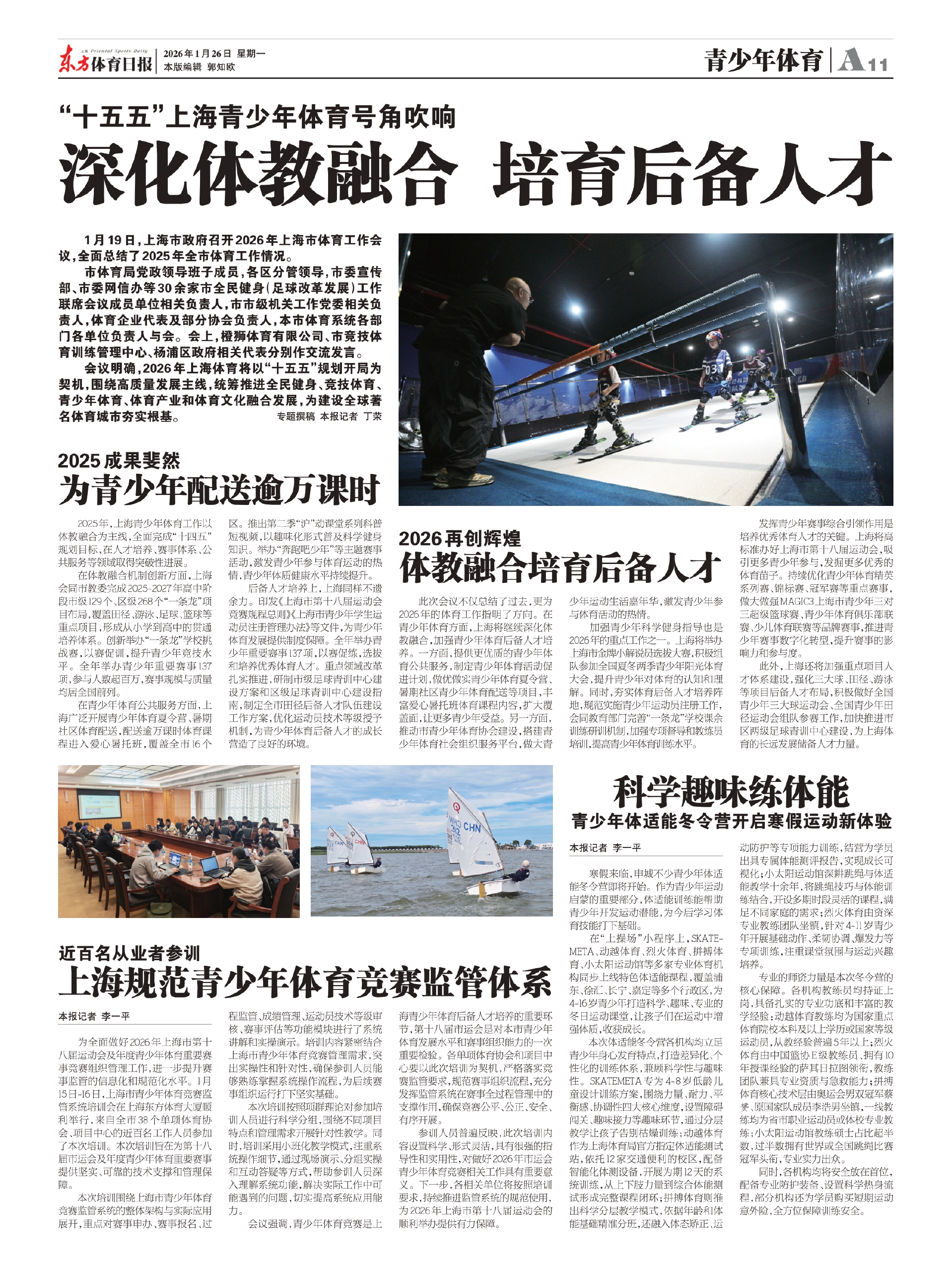 加强青少年科学健身指导也是2026年的重点工作之一。上海将举办上海市金牌小解说员选拔大赛,积极组队参加全国夏冬两季青少年阳光体育大会,提升青少年对体育的认知和理解。同时,夯实体育后备人才培养阵地,规范实施青少年运动员注册工作,会同教育部门完善“一条龙”学校课余训练研训机制,加强专项督导和教练员培训,提高青少年体育训练水平。