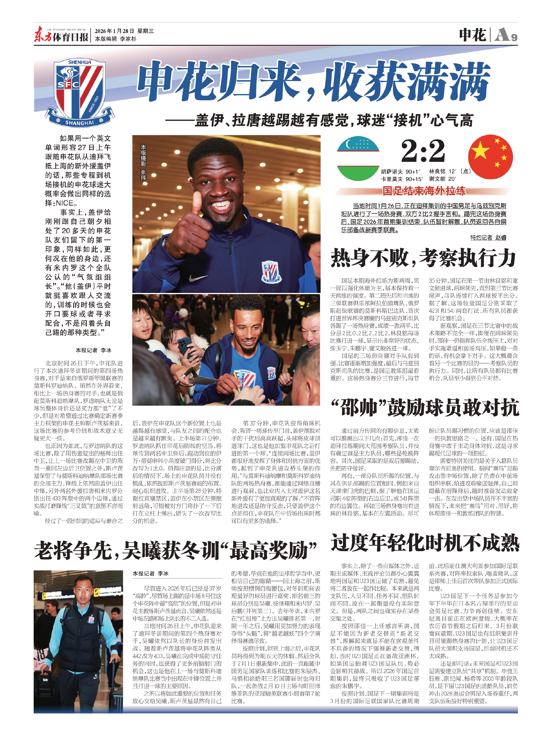 如果用一个英文单词形容27日上午跟随申花队从迪拜飞抵上海的新外援盖伊的话,那些专程到机场接机的申花球迷大概率会做出同样的选择:NICE。